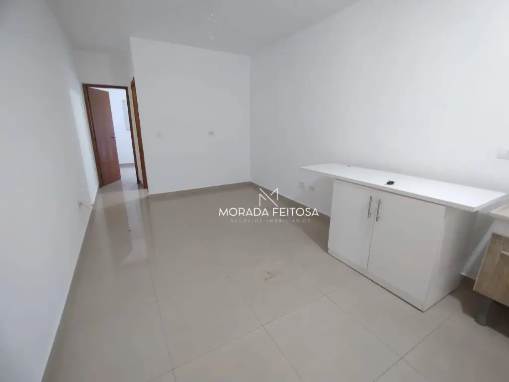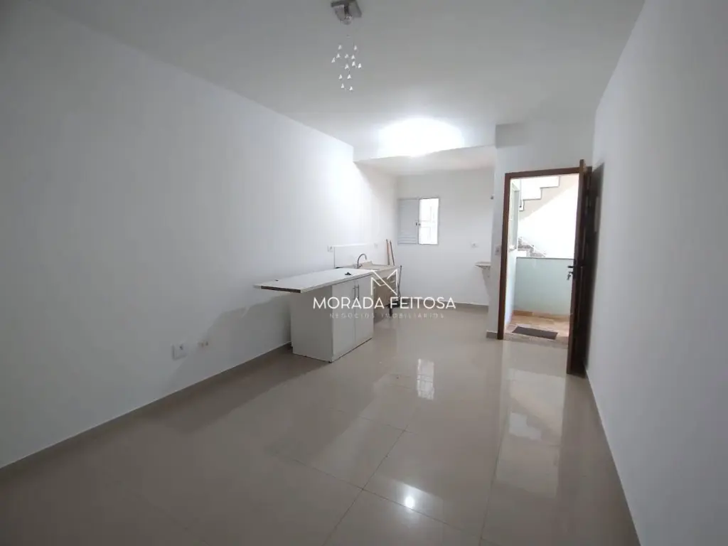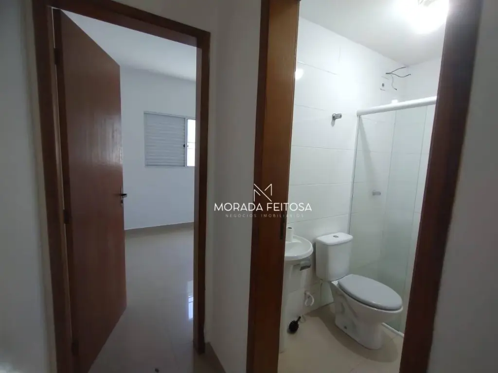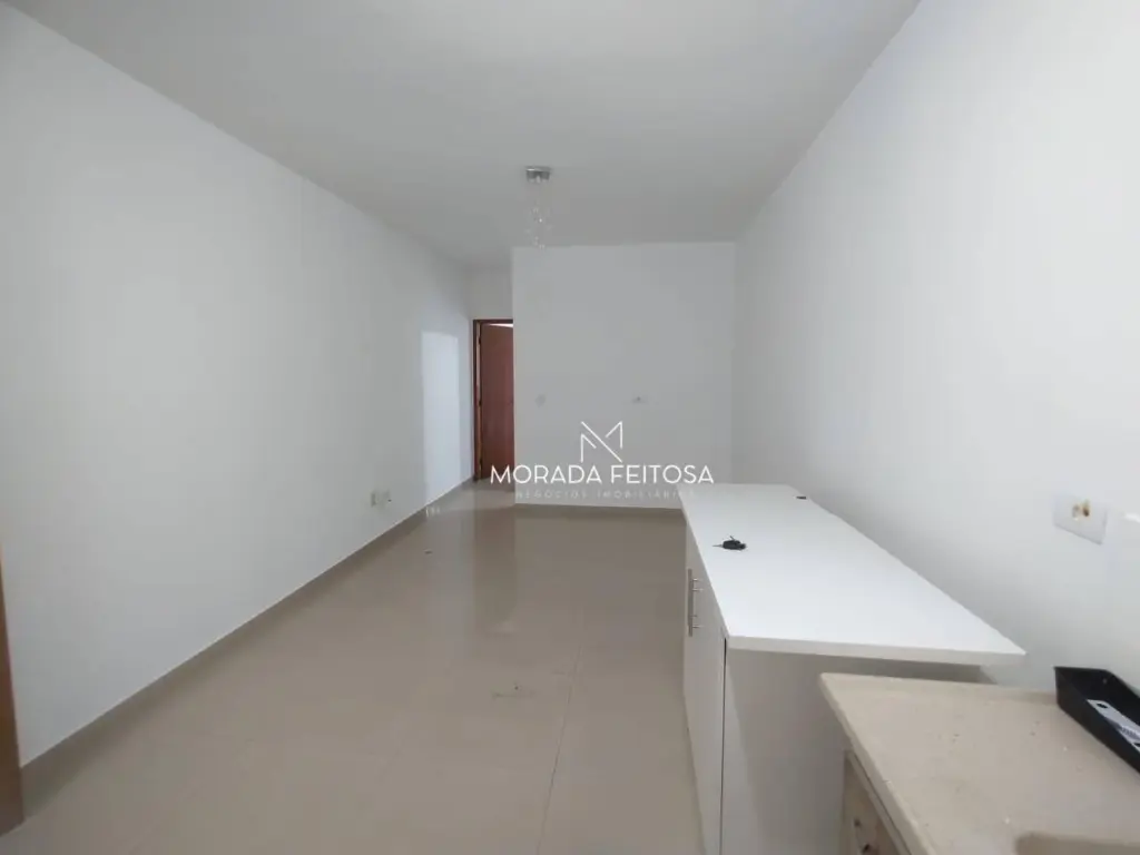 1 dormitório, sala, cozinha com gabinete, 1 banheiro social com box de vidro, todo em piso porcelanato, sem vaga.