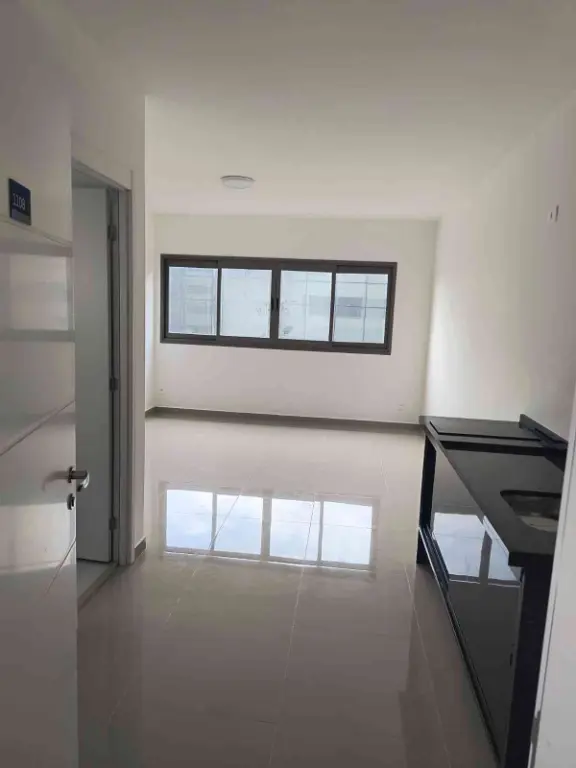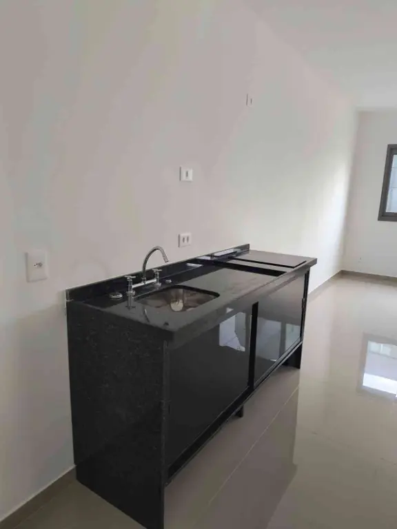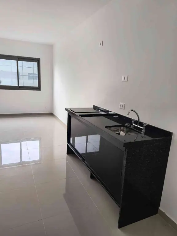 Studio com um dormitório, cozinha em conceito aberto, banheiro.