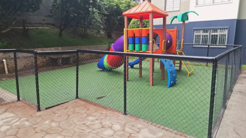 Condomínio com segurança, lavanderia coletiva, play, mine mercado.