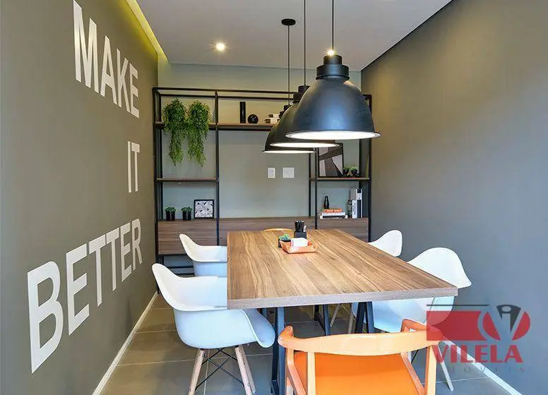Condomínio com espaço pet, academia, churrasqueira, salão de festa, espaço studio, playground e brinquedoteca.