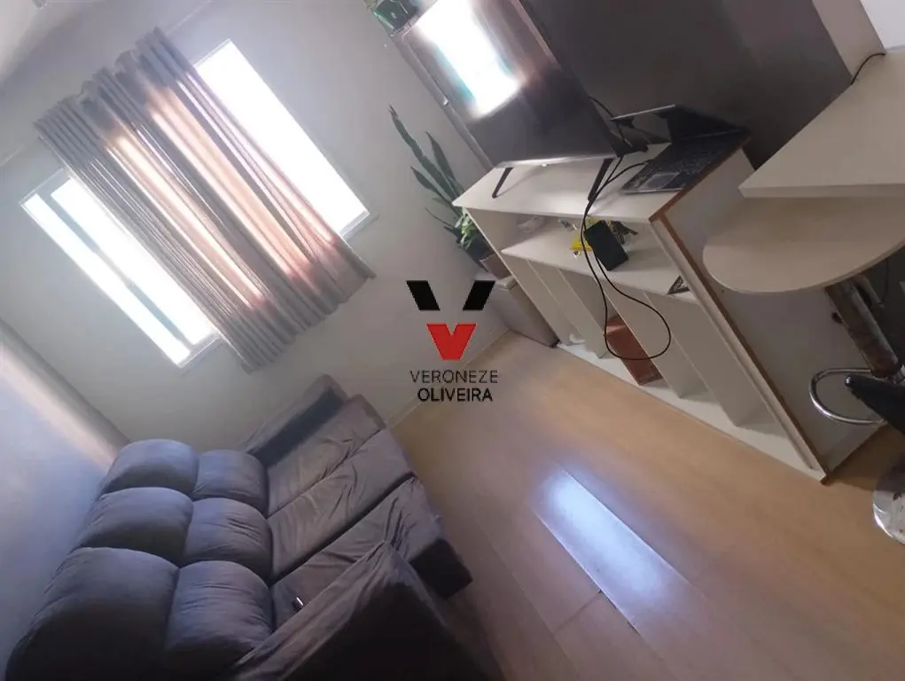 Apartamento com 01 domritório, sala ampla com 02 ambientes, cozinha com planejados, 01 banheiro e área de serviço.