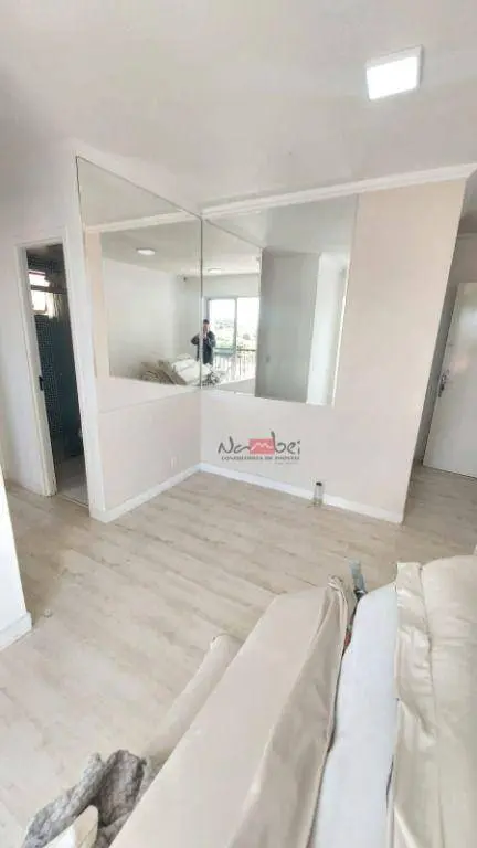 Apartamento 42 m2 de área útil, mobiliado, armários nos dormitórios, cozinha completa, fogão, geladeira, forno micro-ondas, maquina de lavar roupa, painel para tv e armários planejados, banheiro com box e chuveiro.