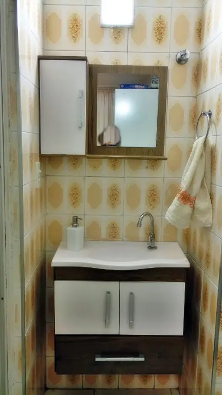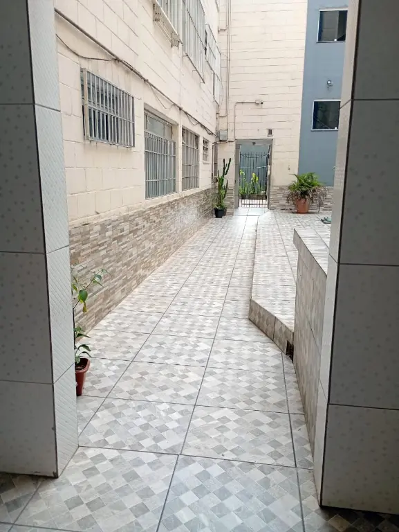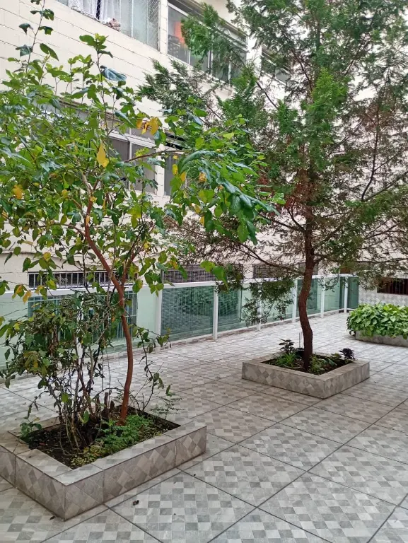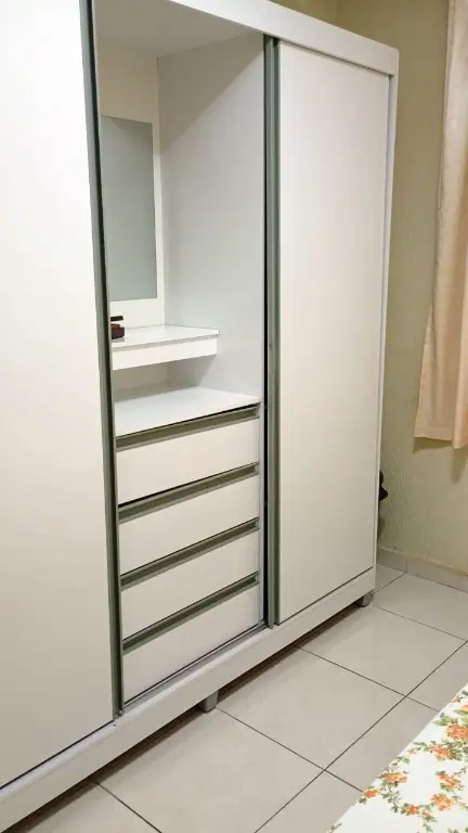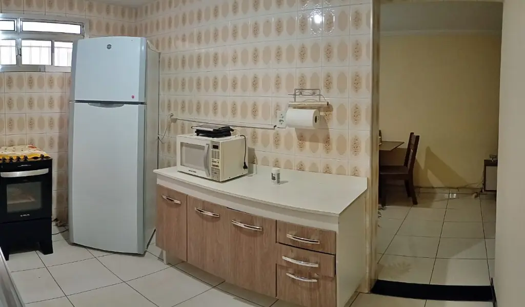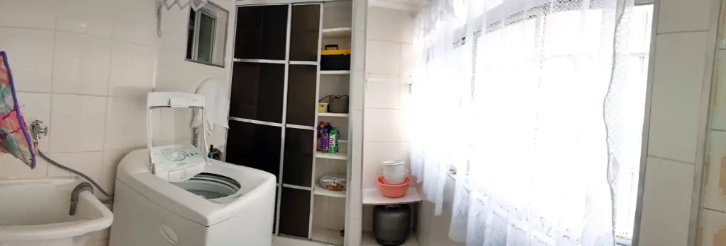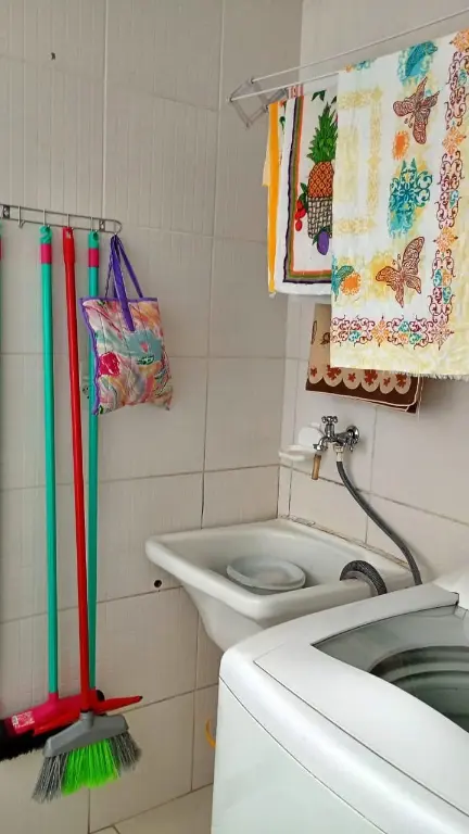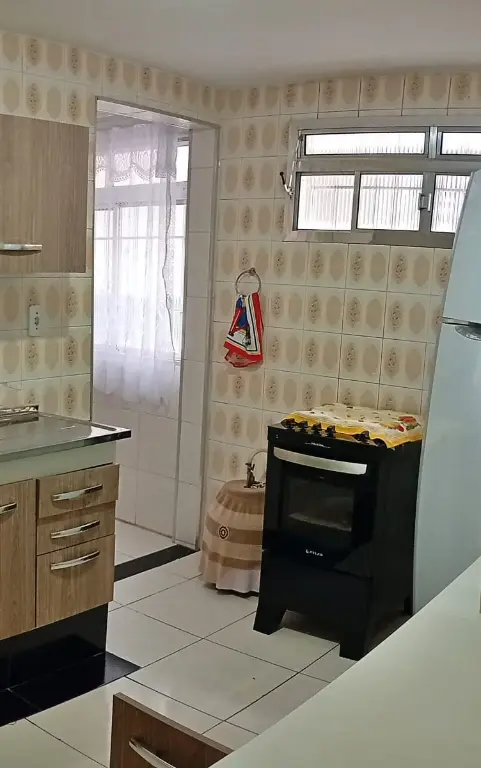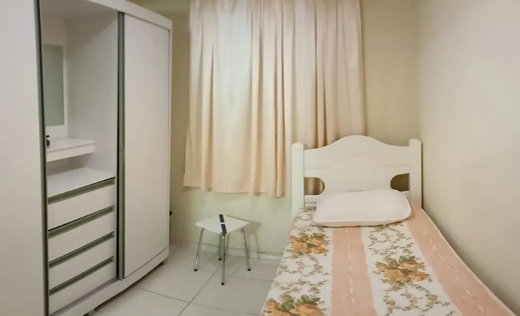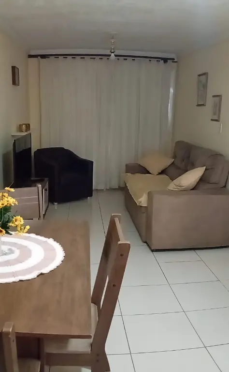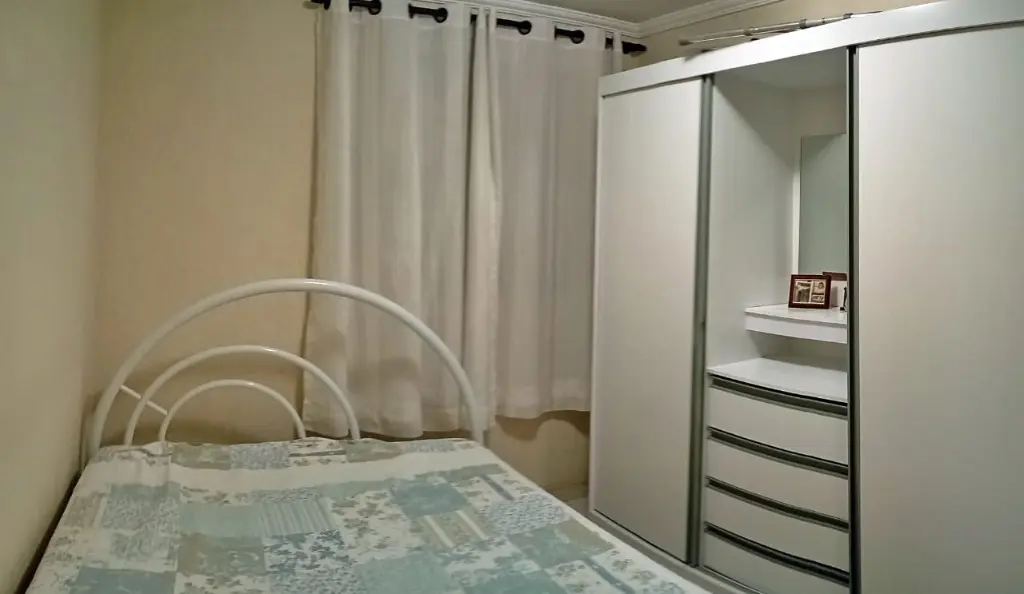 Apartamento Térreo todo mobiliado: Sala com sofá, mesa com cadeiras, rac e cortina. Cozinha com Geladeira, microondas, fogão, armários, botijão de gás e utensílios de cozinha e cortina. Quartos; um deles com cama de casal colchão, guarda roupa e cortina e o outro com cama de solteiro, colchão, cortina e guarda roupa. Lavanderia com tanque, maquina de lavar, armário, janela com cortina. Banheiro com Box de Vidro e barra de apoio para idosos. A água é individual, no qual pagará pelo que consumir.