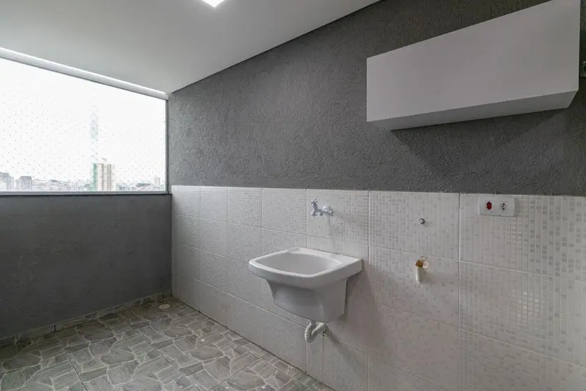 Lavanderia externa com armário