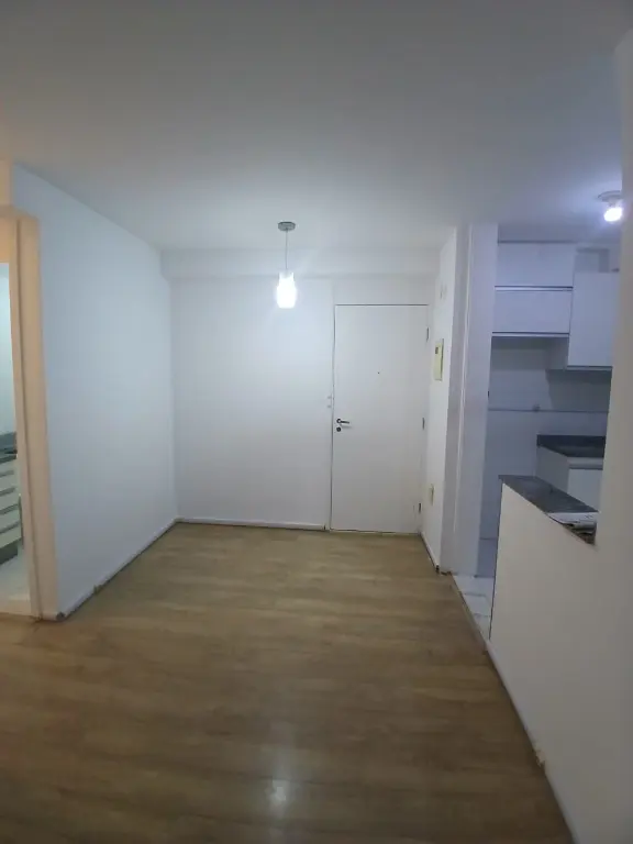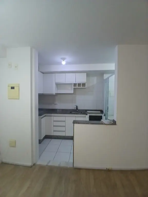 Apartamento dois dormitórios, sala, cozinha, banheiro e vaga de garagem.