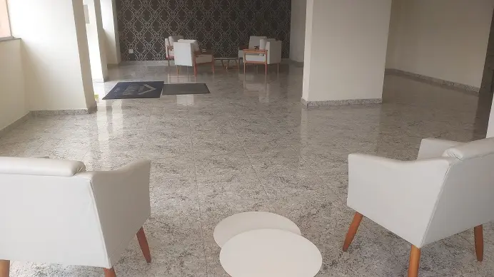 condomínio com: portaria, mini mercado e lava roupas, churrasqueira, academia, etc.