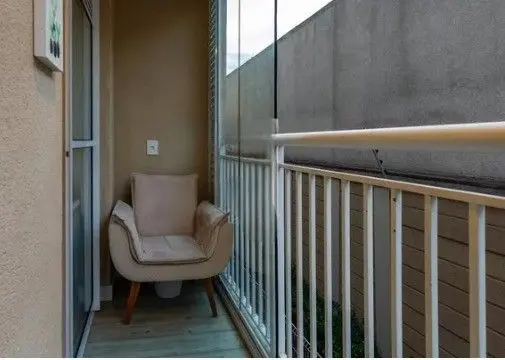 - Varanda espaçosa com fechamento em vidro, ideal para momentos de relaxamento.