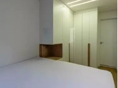 - Dormitório Completo aconchegante com armário e cama, oferecendo conforto e organização.