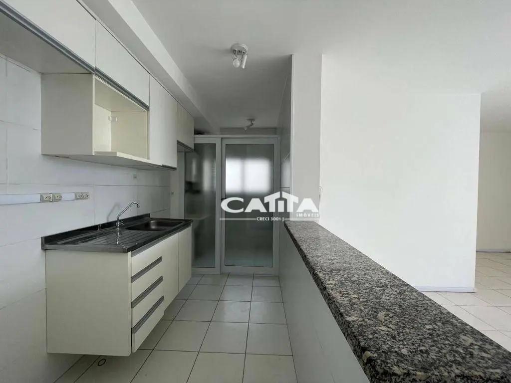 A cozinha estilo americana conta com armários planejados e é integrada à área de serviço com fechamento, garantindo praticidade e organização.