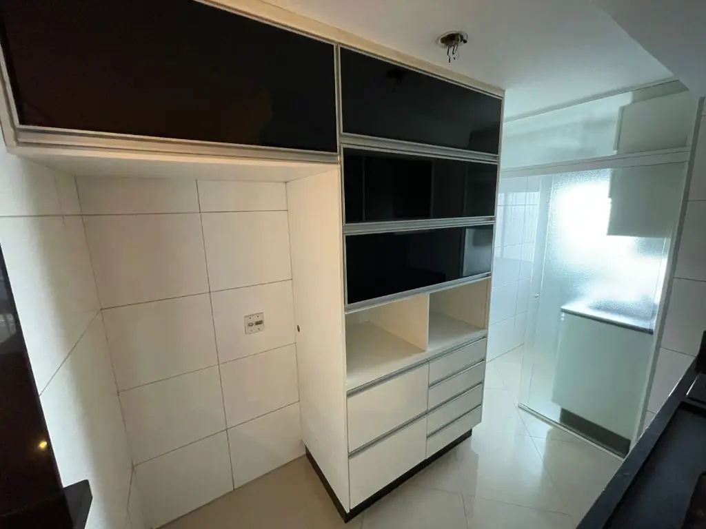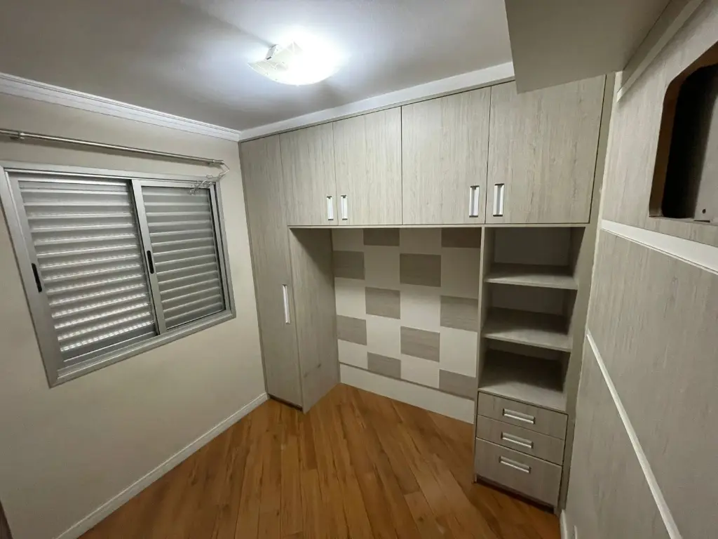 Armários embutidos nos 2 dormitórios, sala, cozinha e área de serviço. Sancas na Sala
