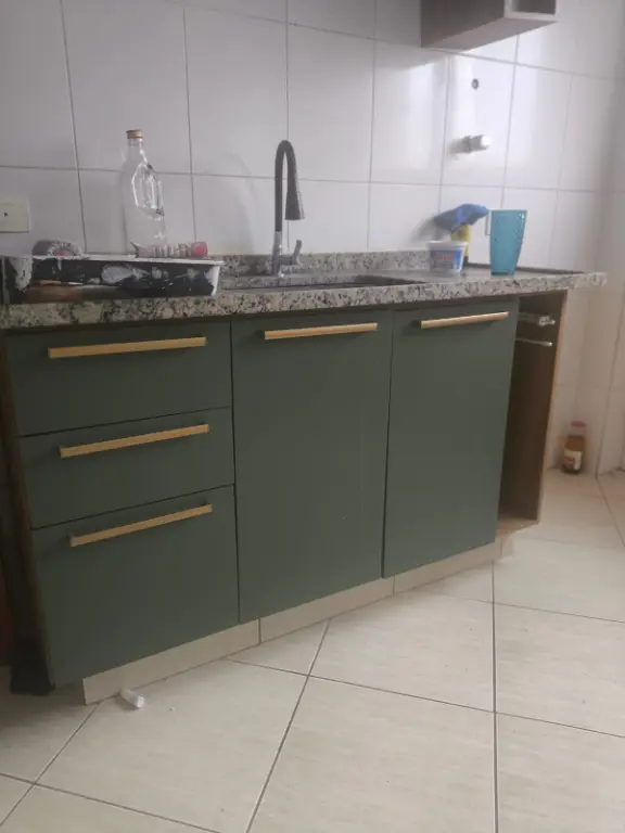 Cozinha ampla, pia com gabinete.