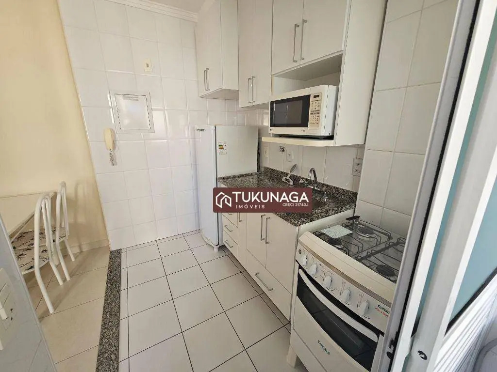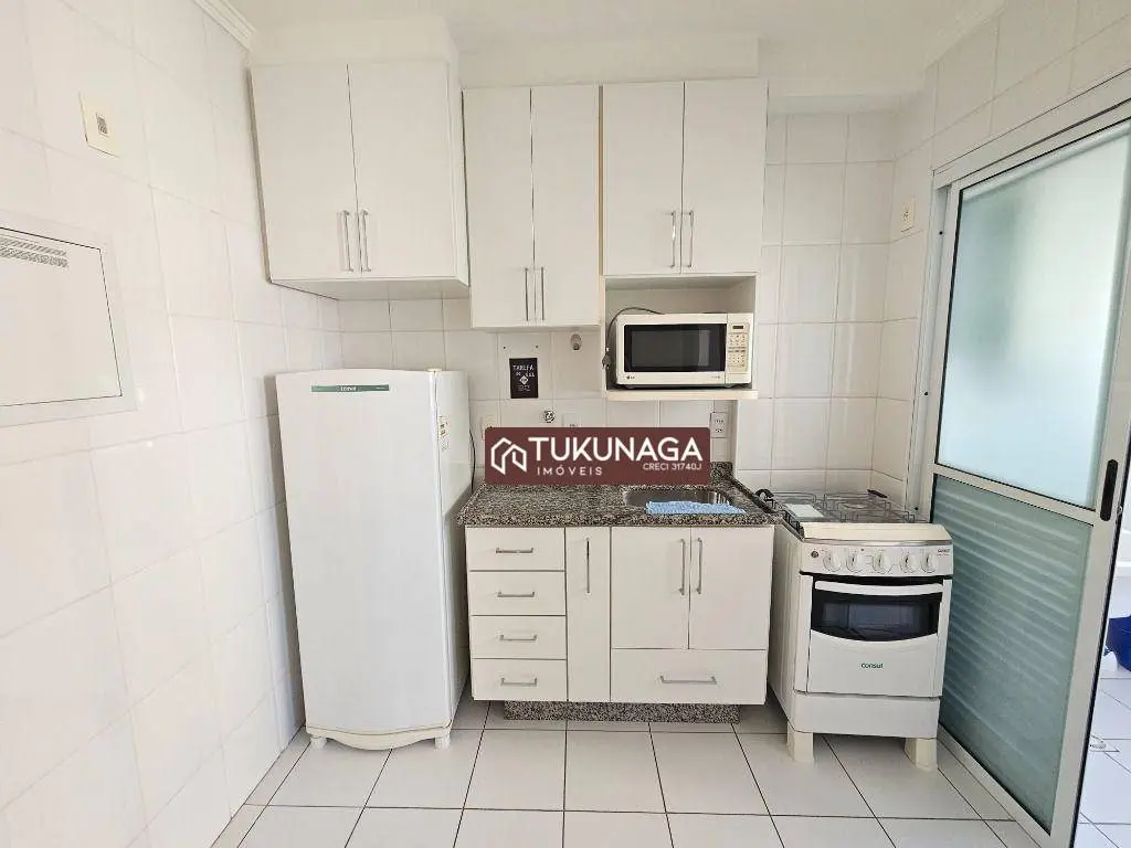 - Cozinha integrada com armários planejados, geladeira, fogão e micro-ondas inclusos