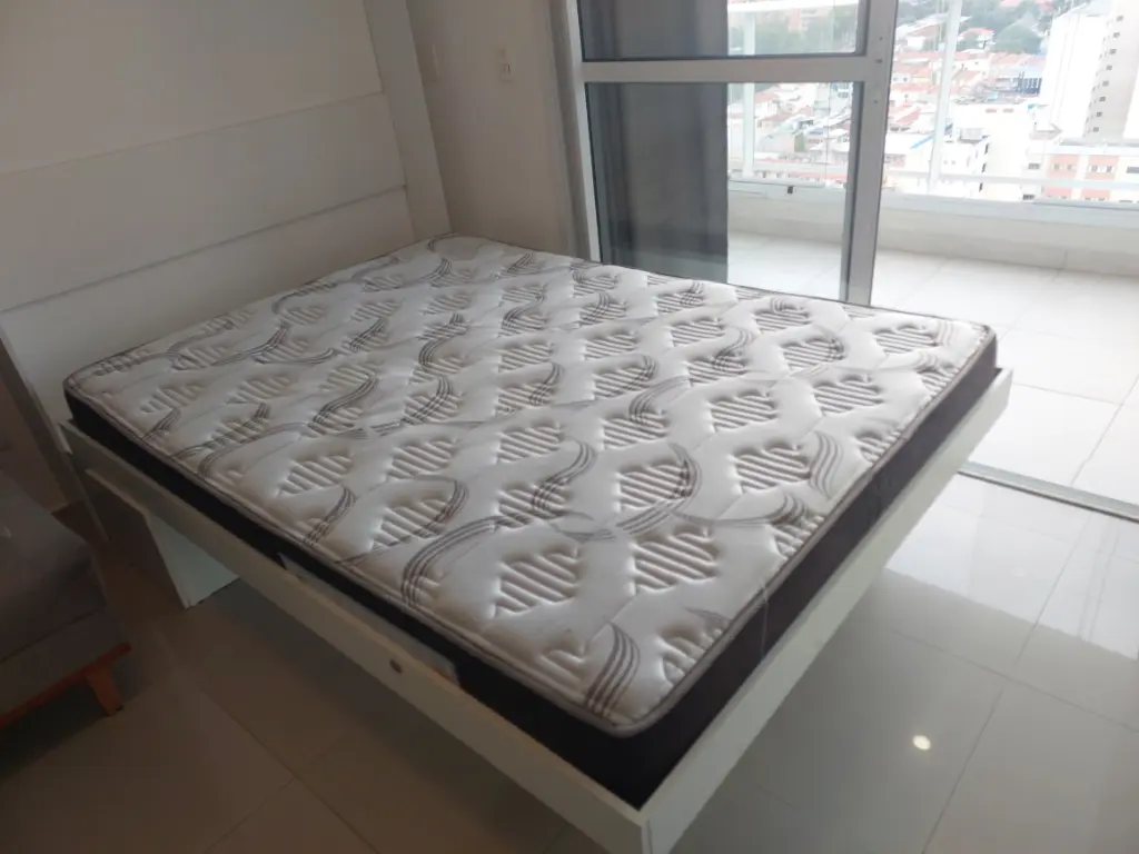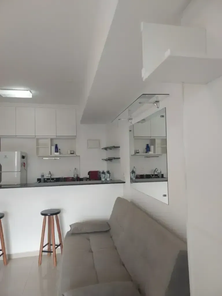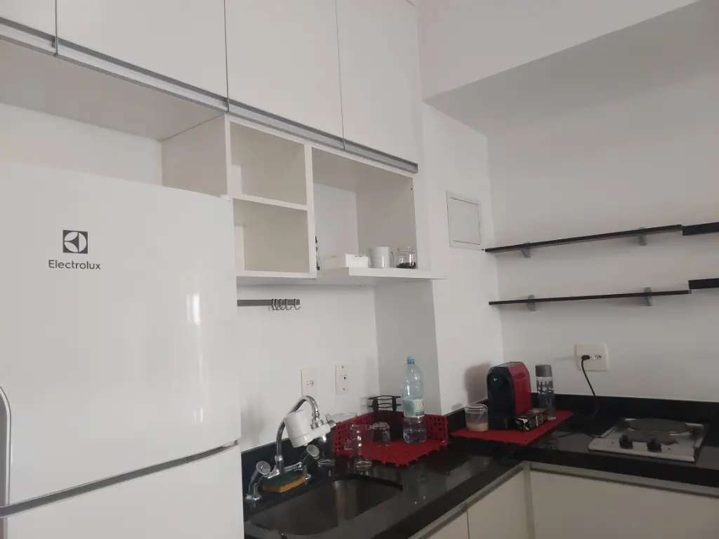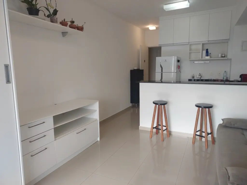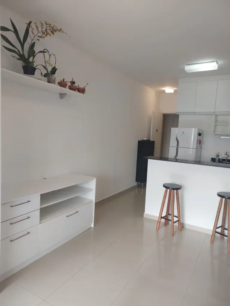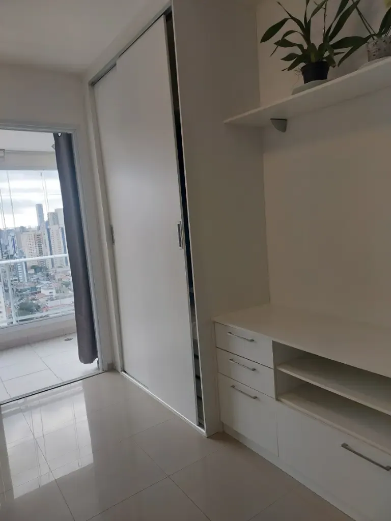 Apartamento de um dormitório mobiliado com armários planejados no dormitório e