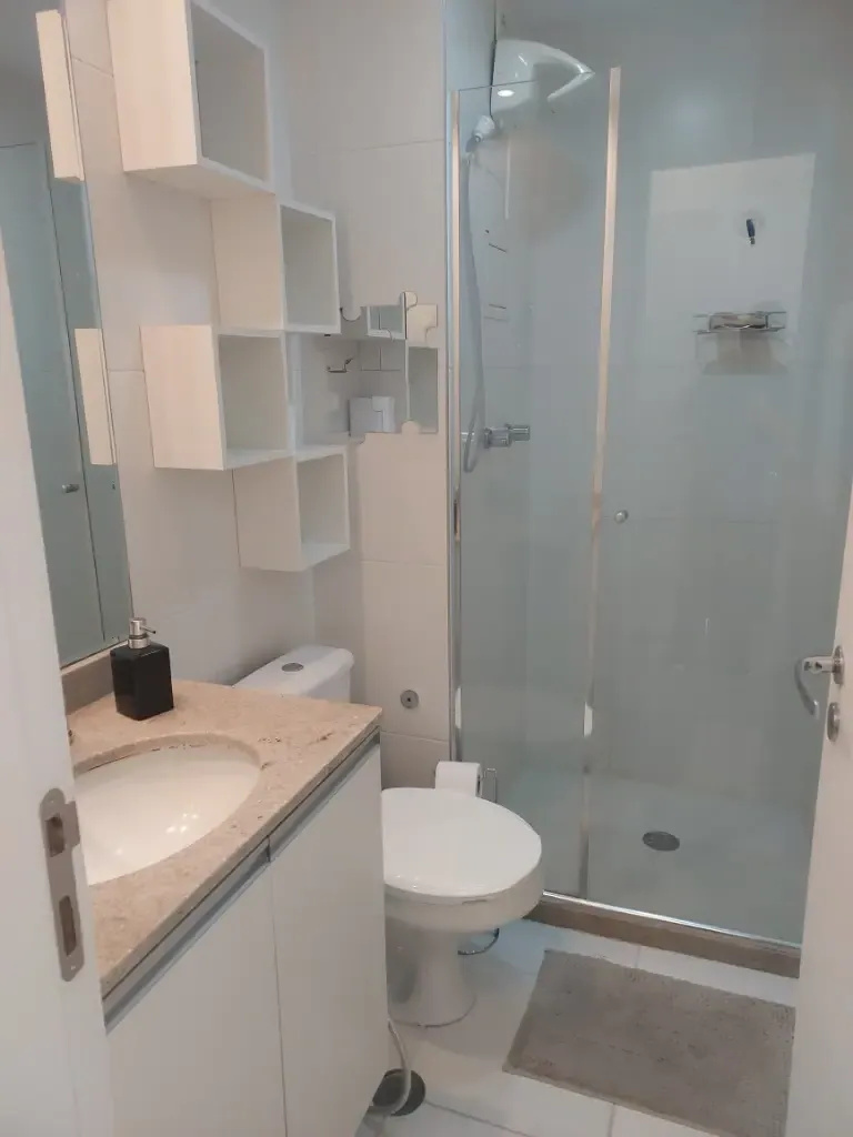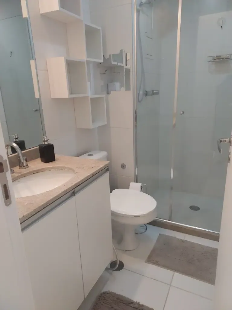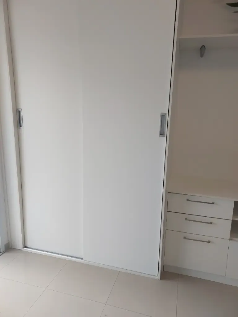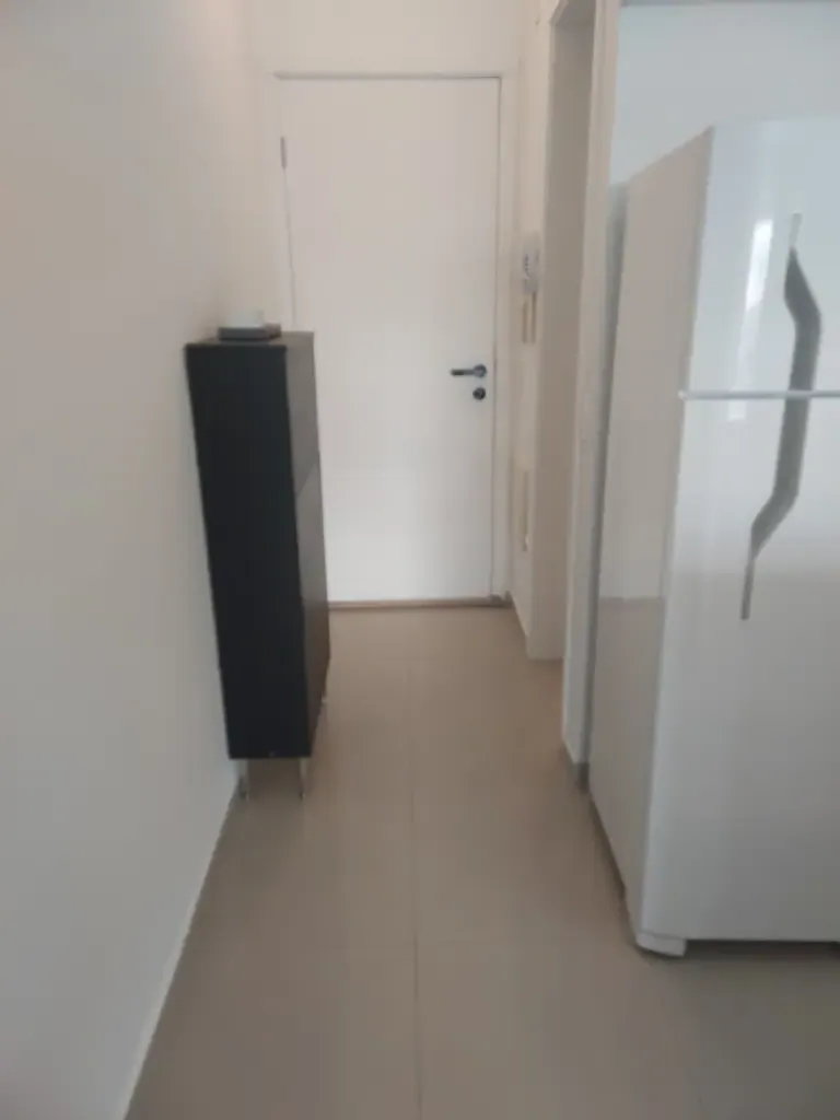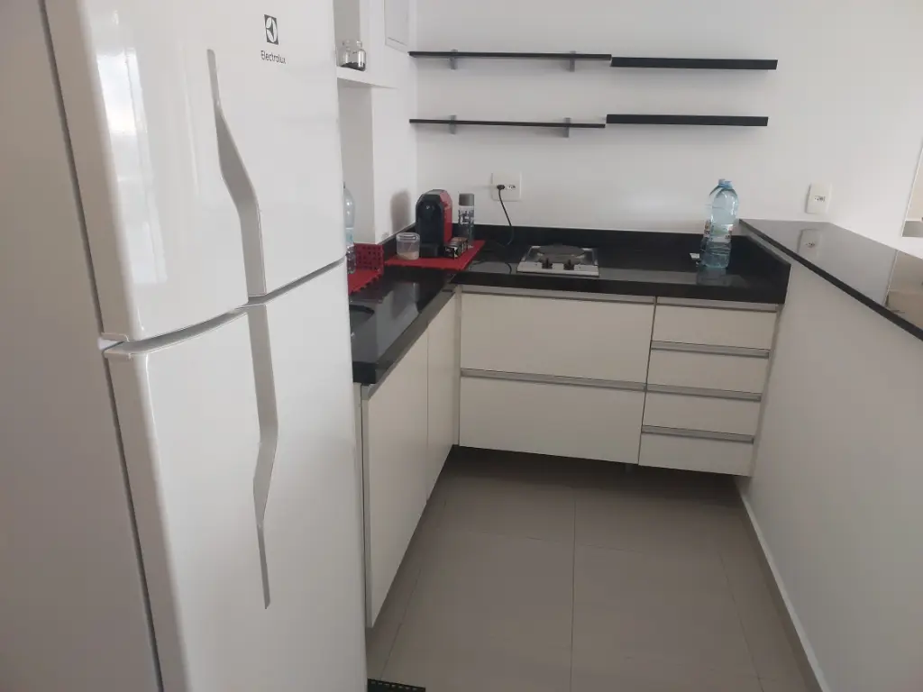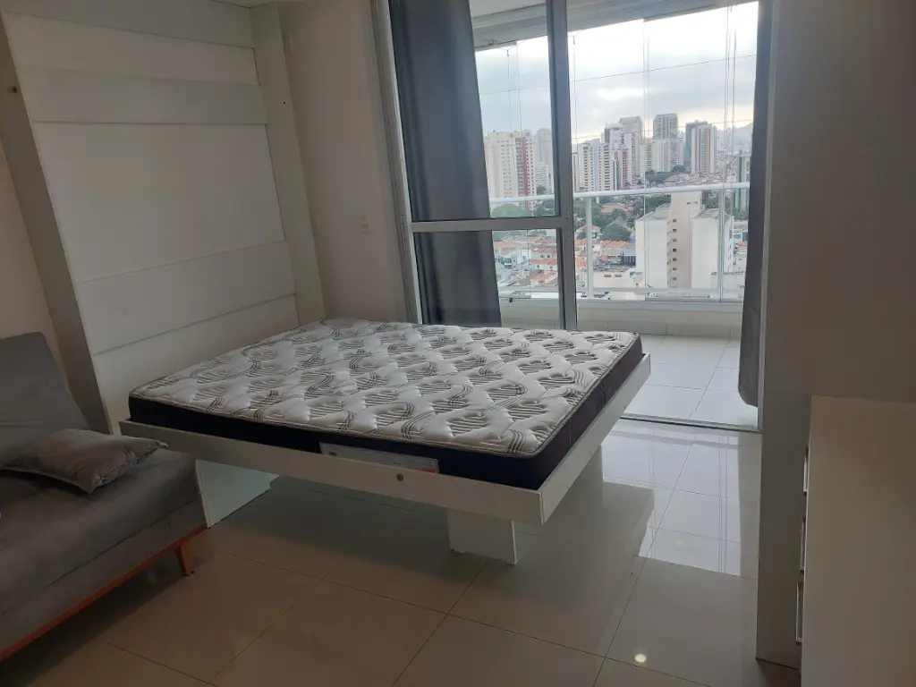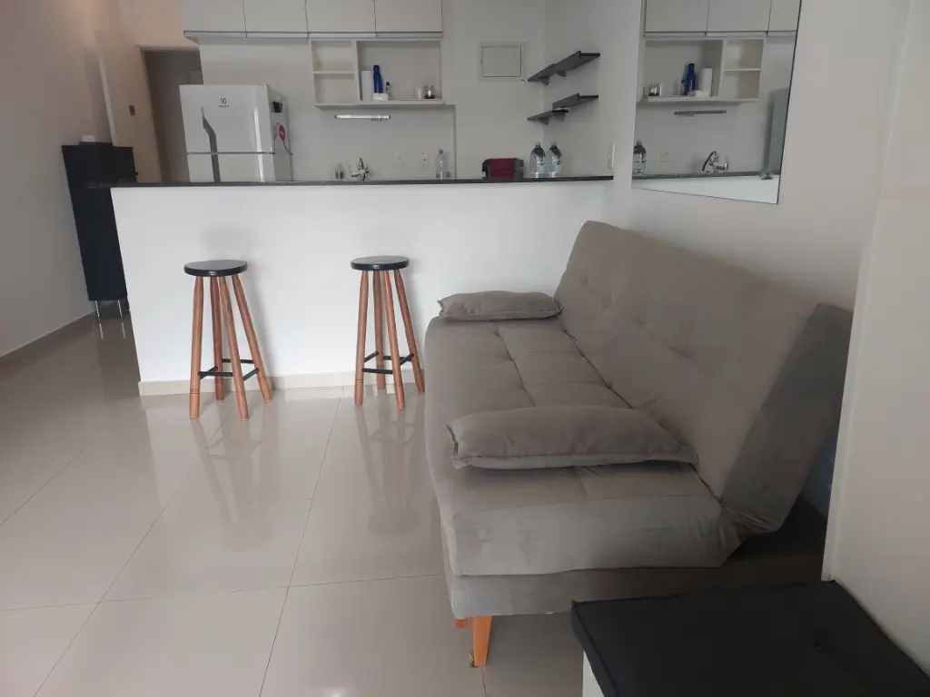 Apartamento de um dormitório mobiliado com armários planejados no dormitório e
