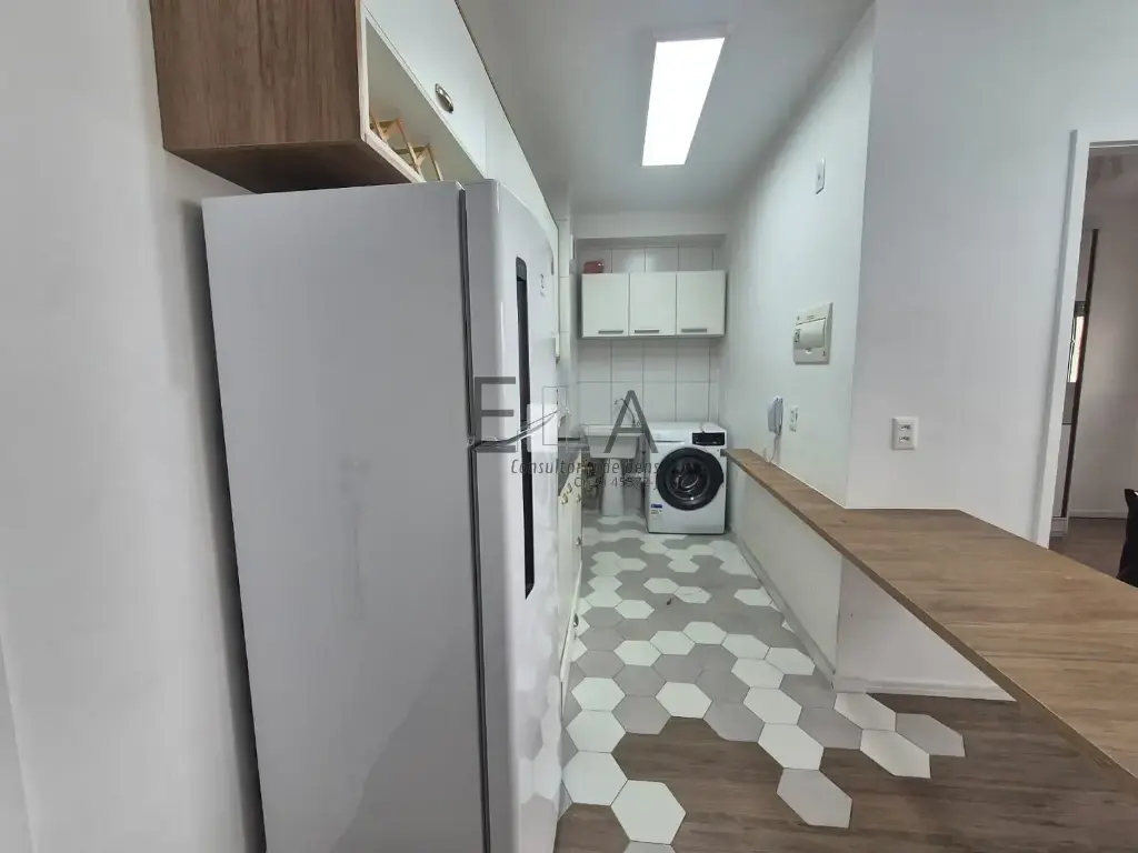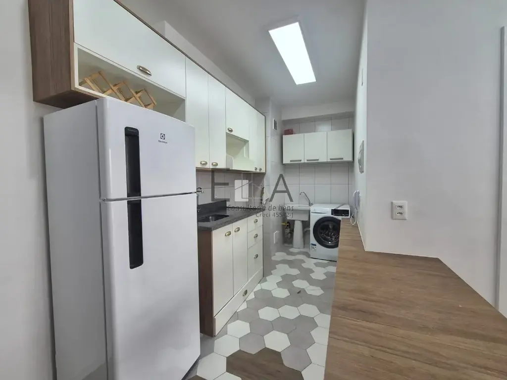 O imóvel conta com 2 dormitórios, ambos com armários planejados, além de cozinha e banheiro também com armários, garantindo organização no dia a dia. Já vem equipado com geladeira e máquina de lavar, proporcionando ainda mais comodidade.