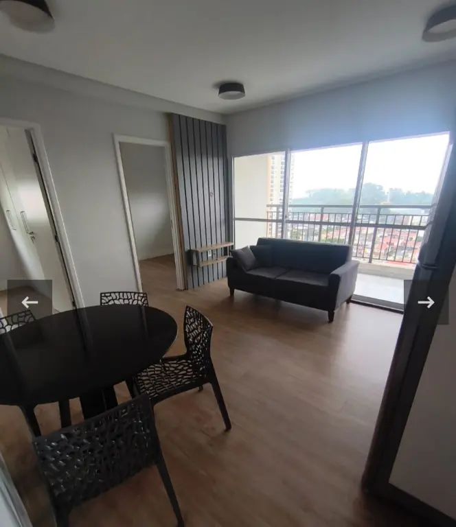Apartamento mobiliado dois dormitórios, sala, cozinha, varanda ampla, vista livre, vaga de garagem.