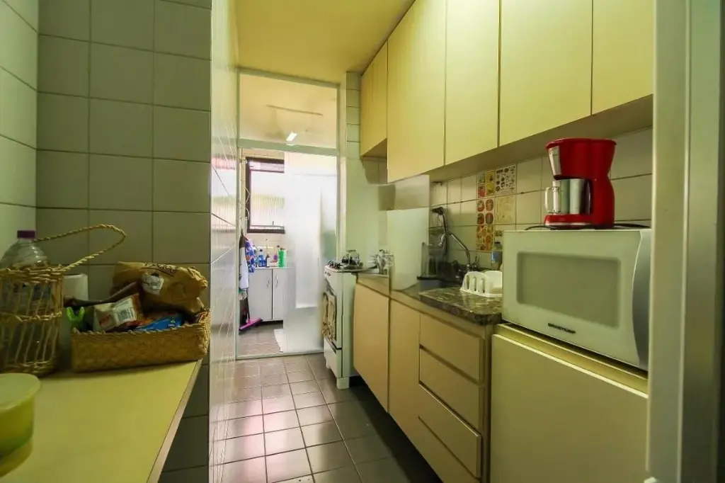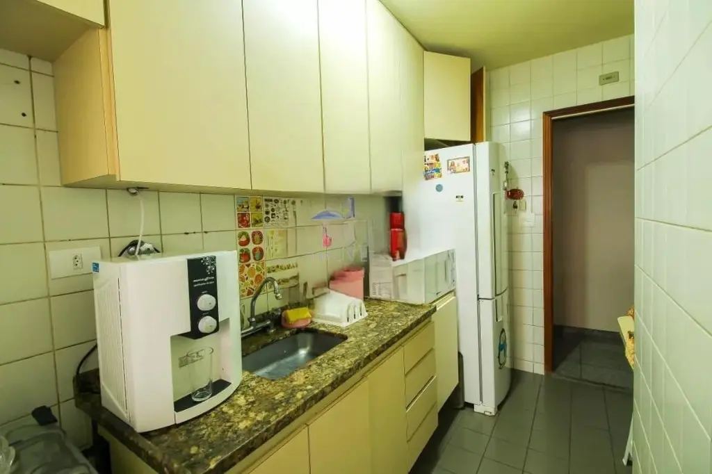 Apartamento de 2 dormitórios, sendo 1 suíte, com sofá, rack para tv, aparador, mesa, fogão e maquina de lavar. Piso frio em todo imóvel e com armários embutidos, além de 1 vaga de garagem. Já mobiliado com sofá, rack para TV, aparador e mesa, além de fogão e máquina de lavar, oferecendo mais comodidade no dia a dia. Possui armários embutidos, otimizando o espaço e garantindo melhor organização.