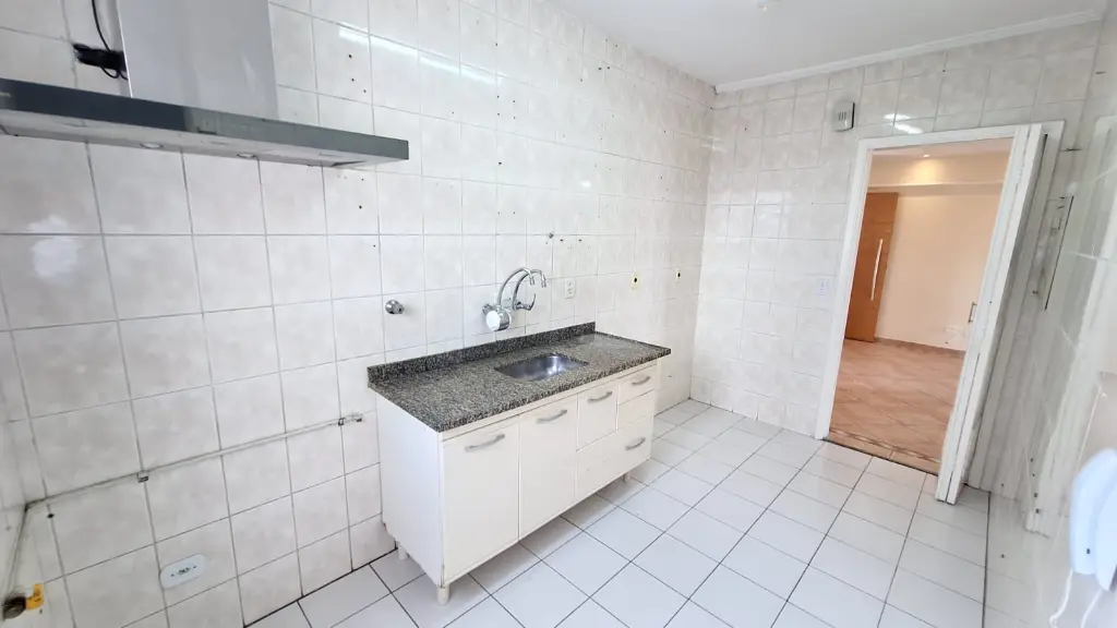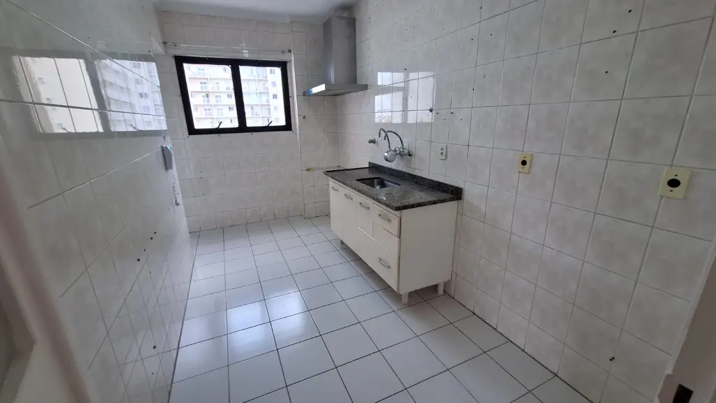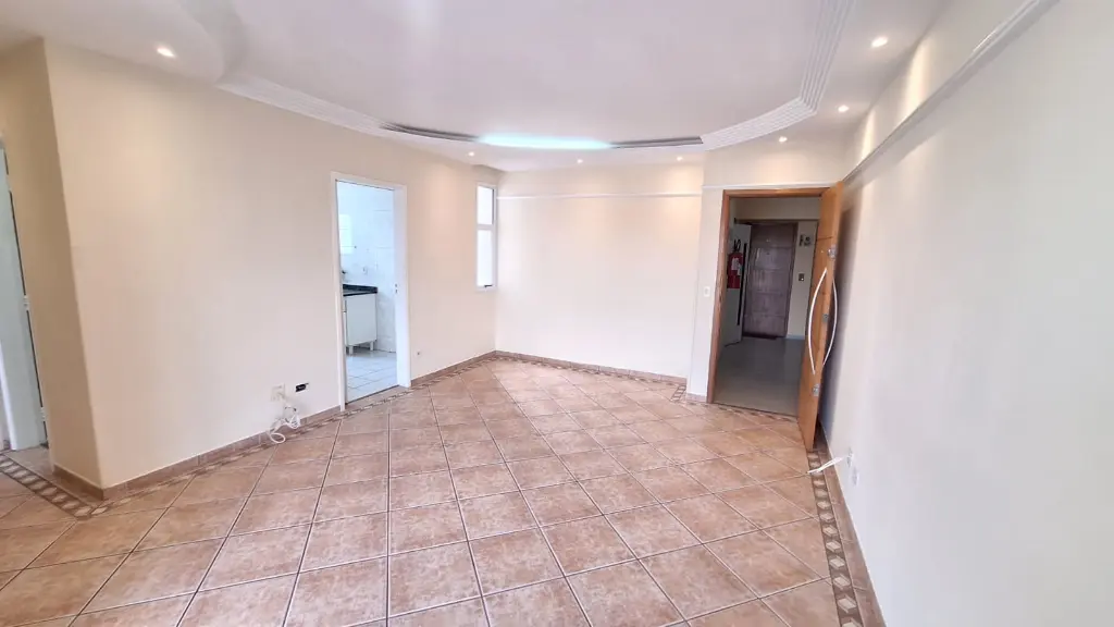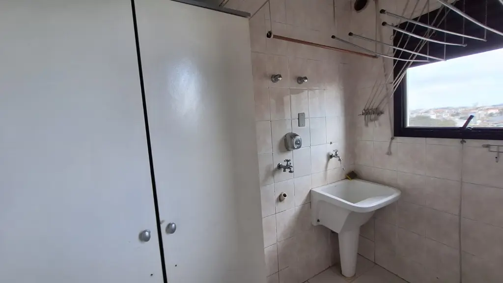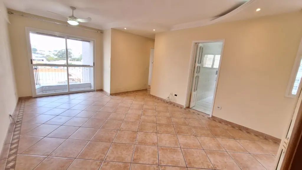 Apartamento de 72m² com sala grande e sacada, cozinha grande, lavanderia separada, dois dormitórios sendo um com suíte e armários, lazer com piscina, churrasqueira, salão de festas, playground e segurança 24 horas.