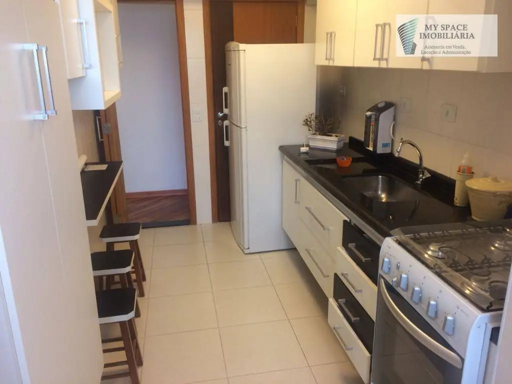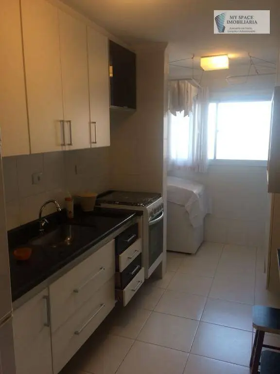 Lindo apartamento de 3 dormitórios com armários, living para 2 ambientes, terraço, cozinha com armários planejados, fogão, microondas e geladeira, área de serviço com banheiro de empregada e máquina de lava e seca, 1 vaga de garagem coberta.