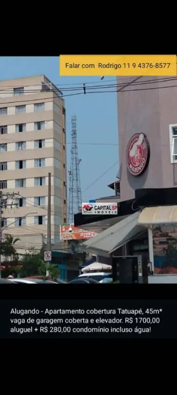 Apartamento 45m2 com cobertura no Tatuapé, próximo a padaria Marengo,