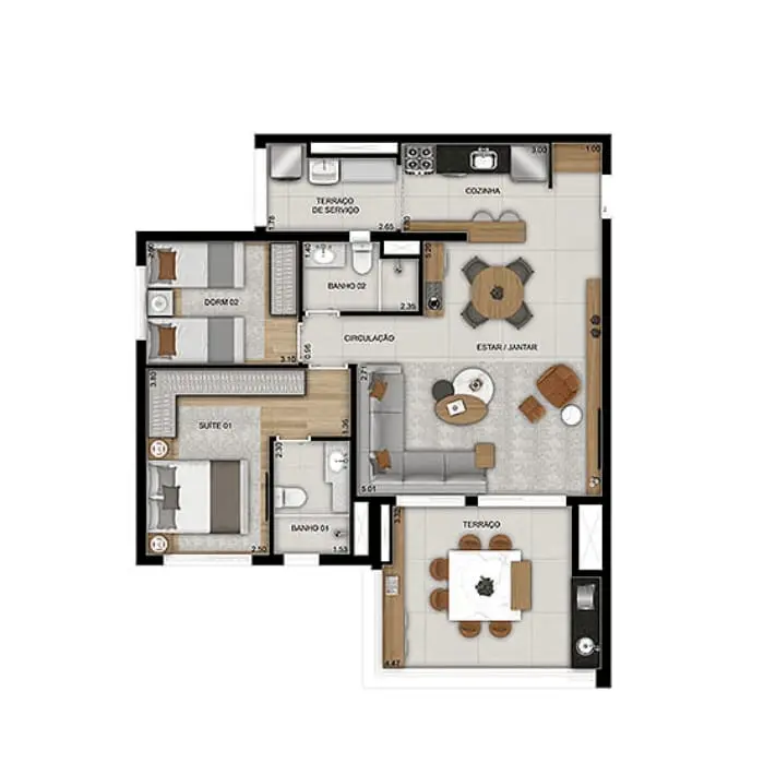 ✔️ 2 dormitórios, sendo 1 suíte