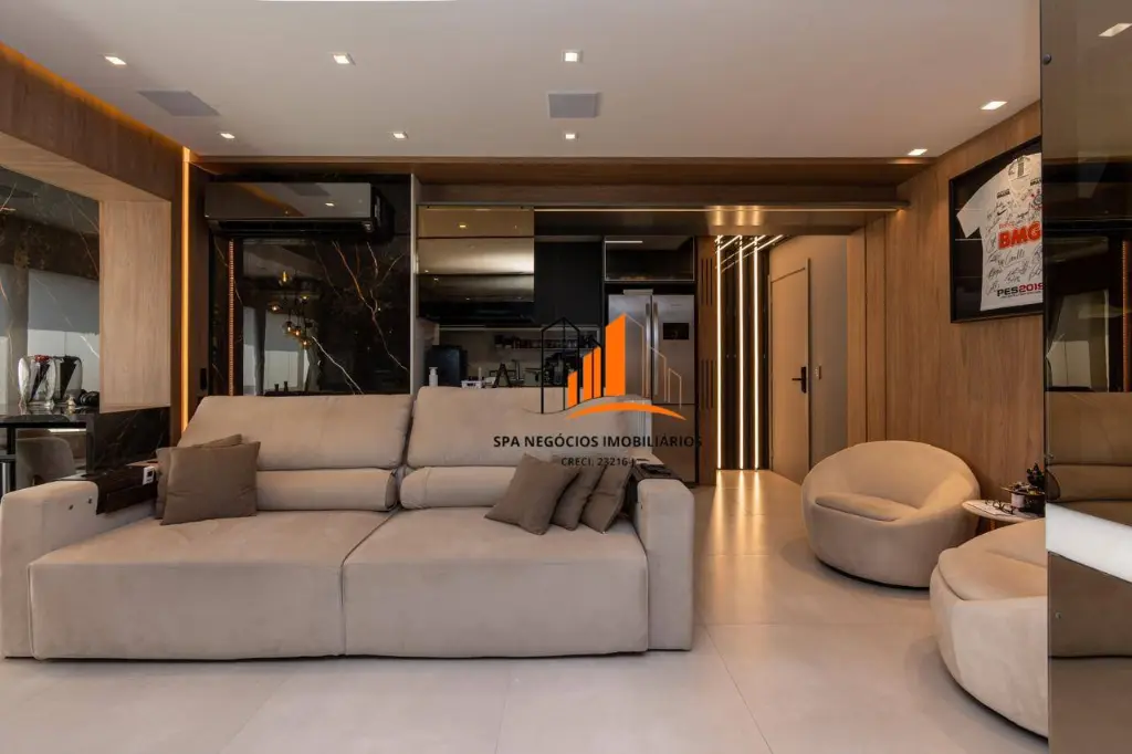 Sala integrada com a varanda gourmet e cozinha