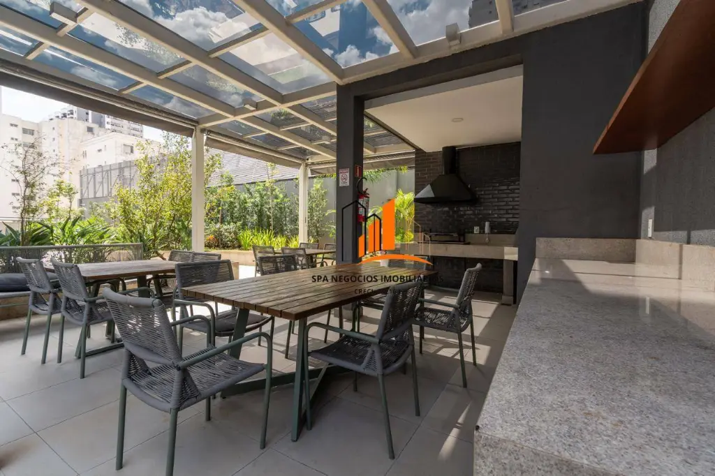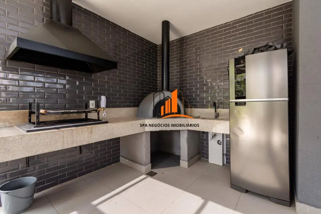 Ampla varanda gourmet com churrasqueira envidraçada