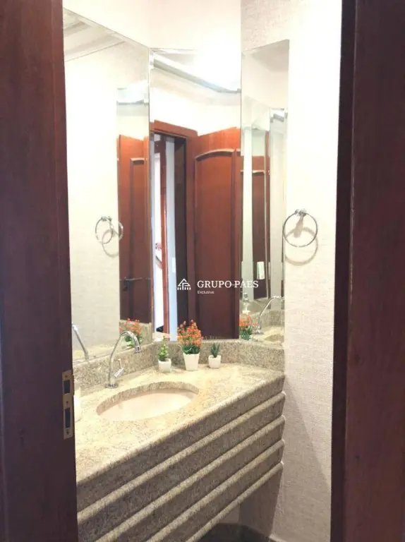 banheiro social também com banheira, sala de estar com dois ambientes e lareira, lavabo, sala de jantar, copa e cozinha