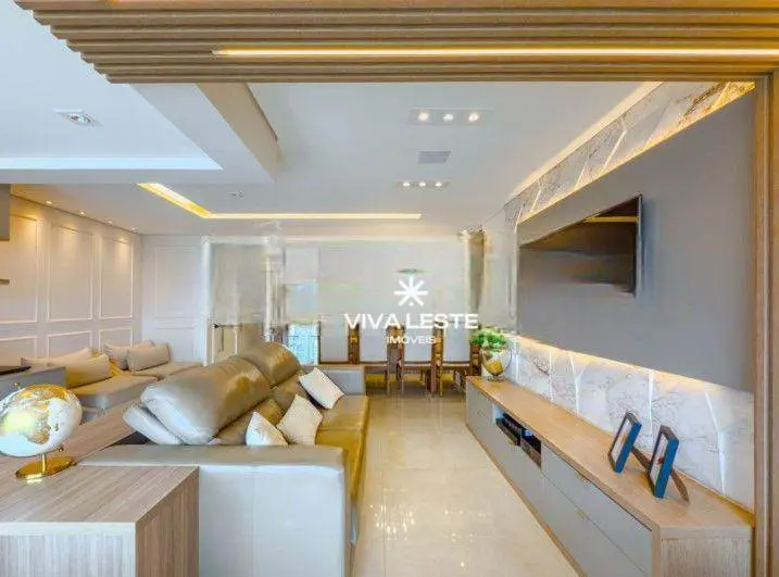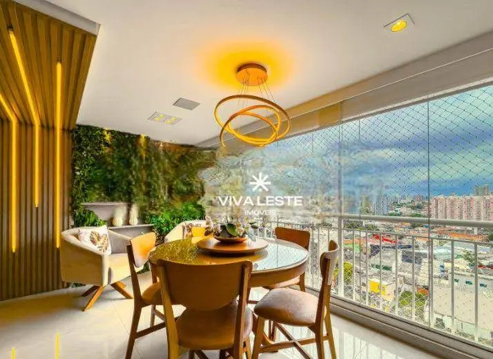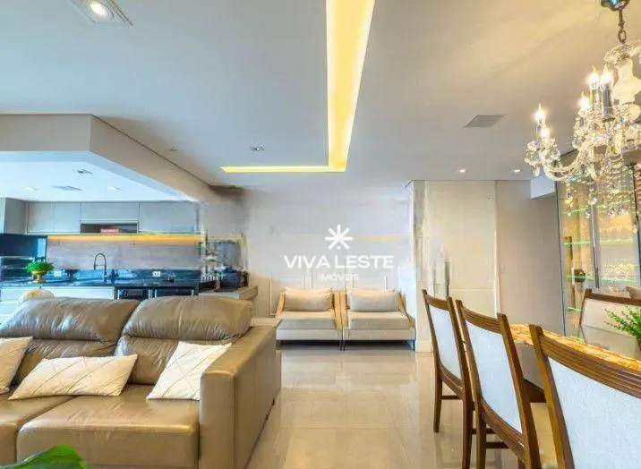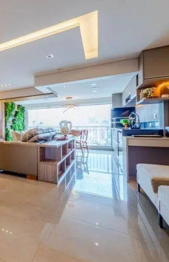A sala ampla integra-se perfeitamente a uma belíssima varanda gourmet, criando um ambiente de convivência único com piso em porcelanato e iluminação em teto com LED embutido.