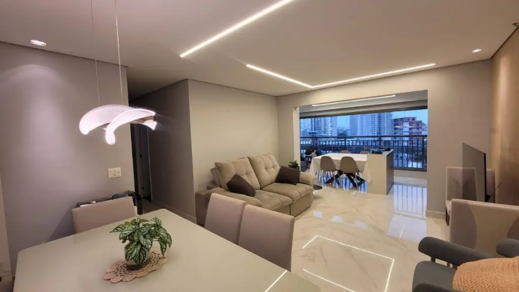 Apartamento com 118 m² muito bem distribuídos, composto por 3 suítes, hall privativo, sala ampla e integrada à varanda gourmet com churrasqueira a carvão, ideal para receber com conforto e sofisticação. Todos os ambientes estão completos, com móveis planejados, eletrodomésticos e acabamentos de qualidade, permanecendo exatamente como nas fotos.
