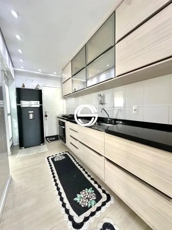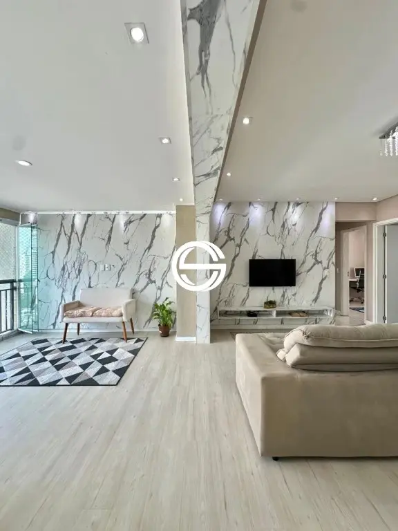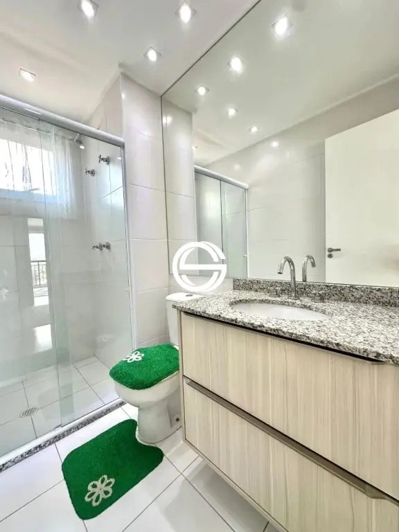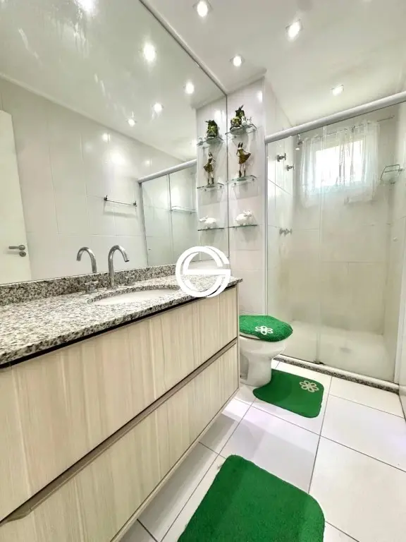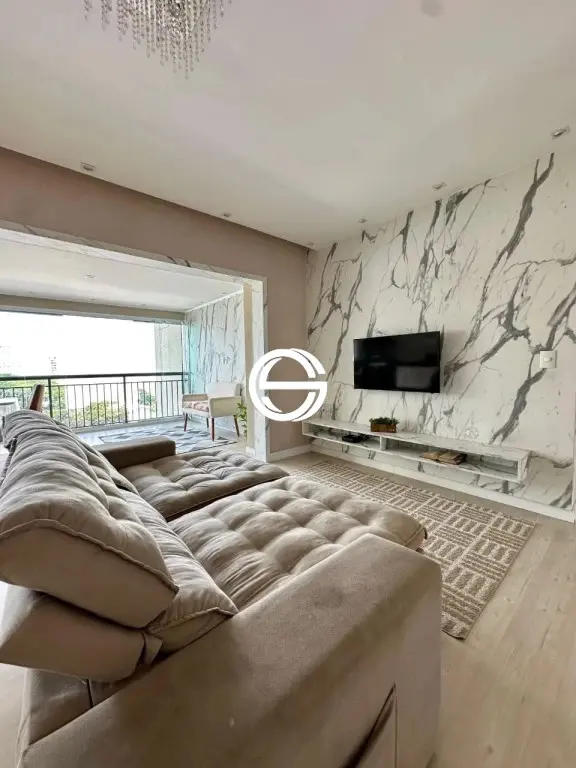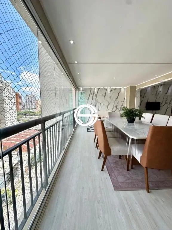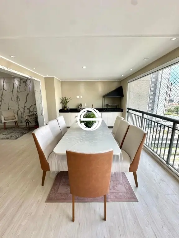 Apartamento com 3 dormitórios sendo 2 suítes, 5 banheiros ao todo (incluindo o de serviço), cozinha, lavanderia, despensa, sala com 2 ambientes, varanda gourmet com churrasqueira, 2 vagas de garagem cobertas.