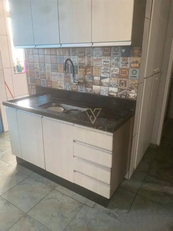 O imóvel conta com ventilação natural, piso em todos os cômodos, cozinha com móveis planejados e mármore instalado, áreas molhadas são revestidas em azulejo, janelas com esquadrias em alumínio, área de serviço separada da cozinha, sala com detalhes no teto em sanca de gesso com iluminação em LED, banheiro com box de vidro e dormitórios aconchegantes.