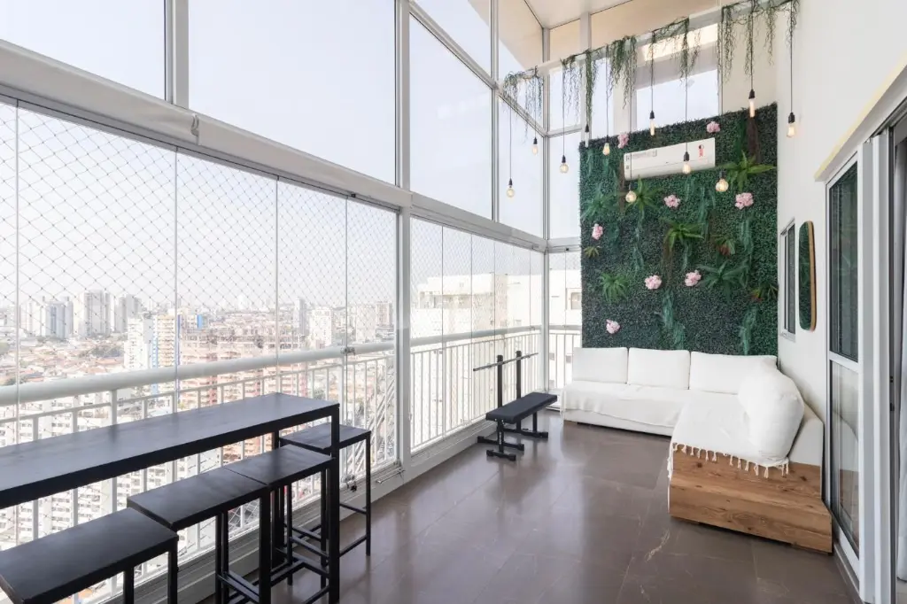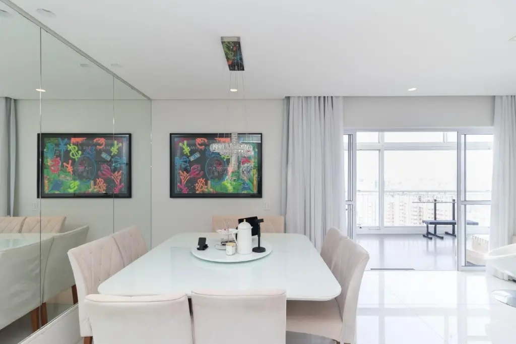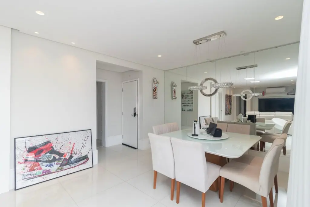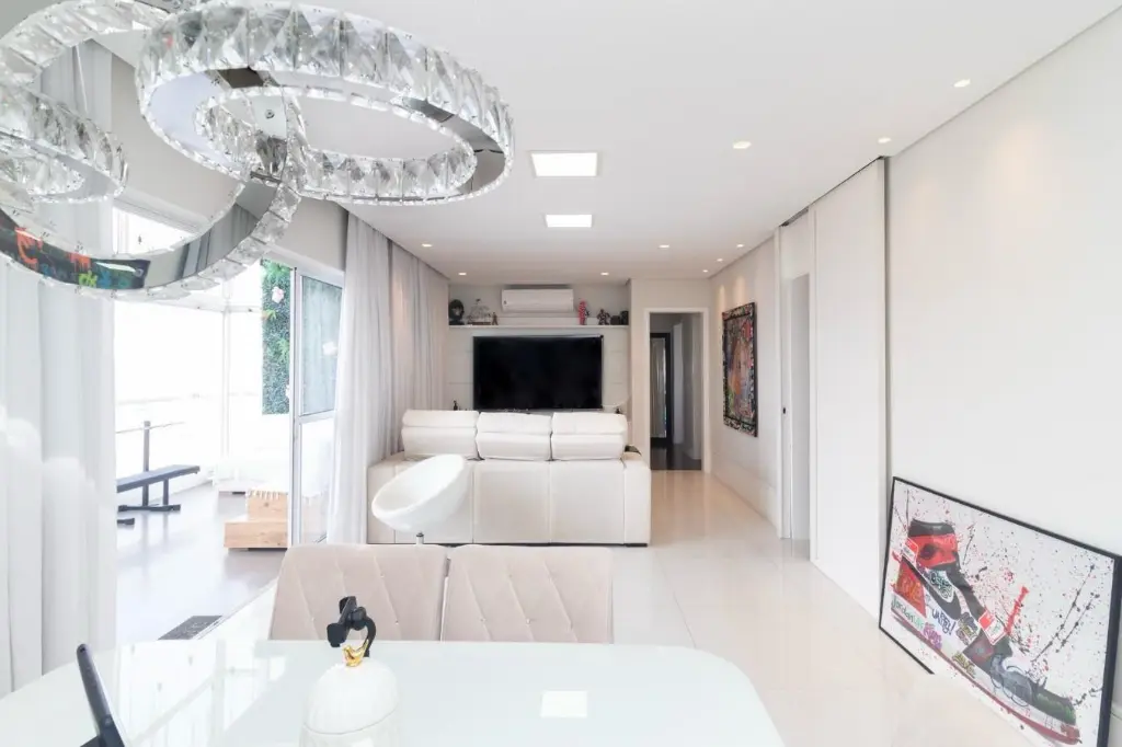 Ao entrar, você é recebido por uma espaçosa sala de estar, com muita luz natural pelas amplas janelas que proporcionam uma vista encantadora da cidade