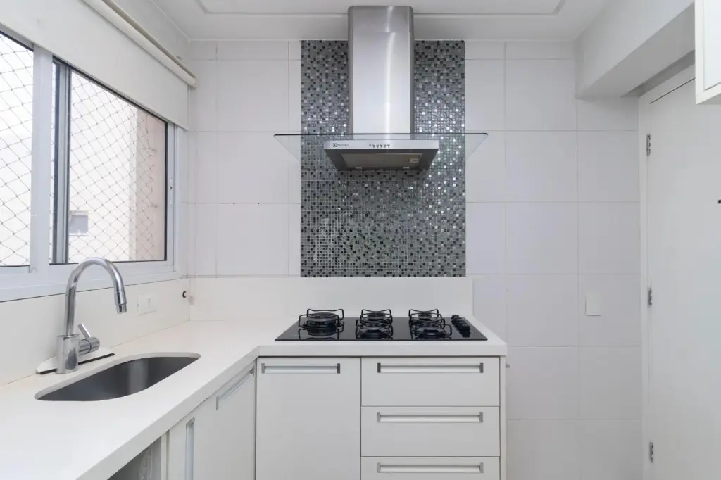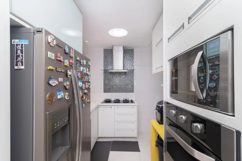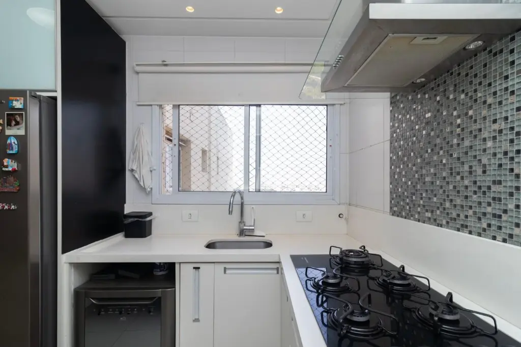 A cozinha moderna e funcional, armários elegantes e bancadas em granito