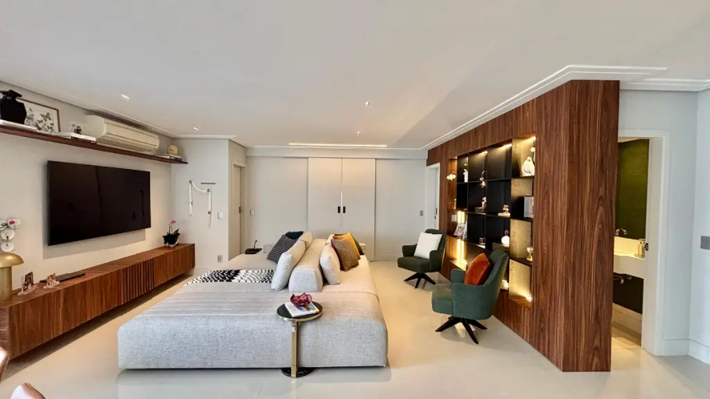 Acabamentos modernos, projeto de iluminação e estrutura para ar-condicionado