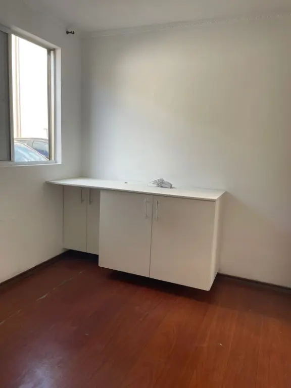 2 quartos, 42 m², na Vila Antonieta. Sala é ampla, e a cozinha já vem com armários planejados. O banheiro também tem armário.