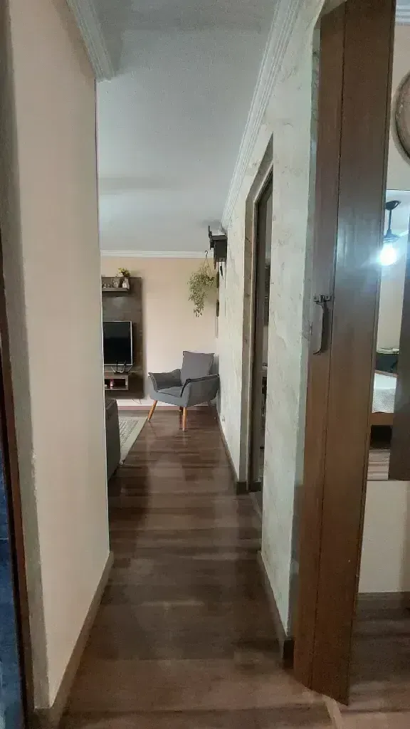 O apartamento possui 2 dormitórios, sala confortável, cozinha funcional, área de serviço e 1 banheiro, e uma vaga de garagem. Os pisos da sala e dos quartos são em vinílico, trazendo mais conforto, beleza e praticidade ao ambiente.