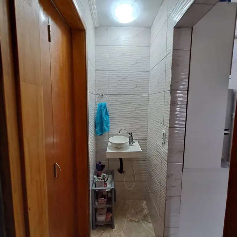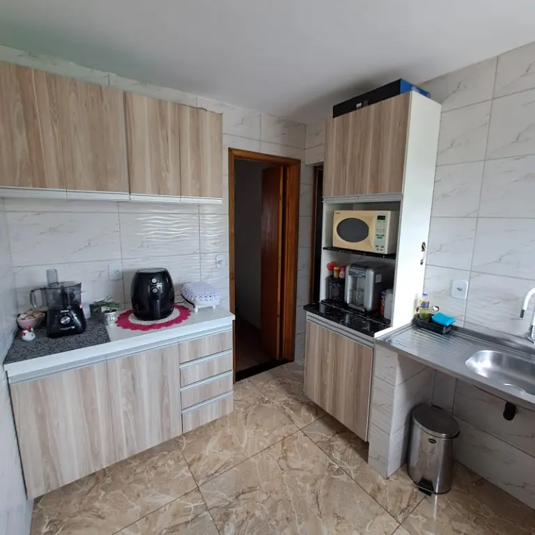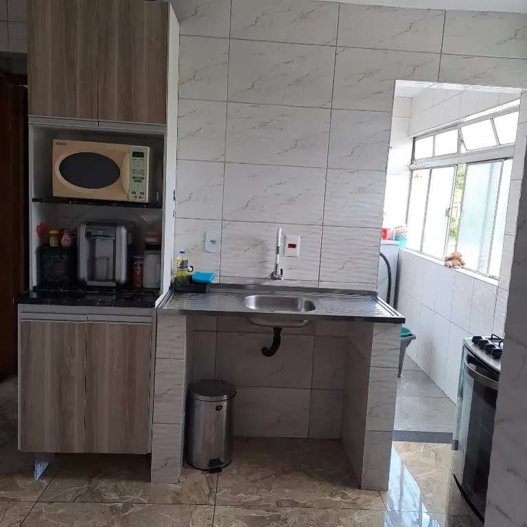 # Com (2)Dois Dormitórios, Sala espaçosa, Cozinha grande, banheiro com box de vidro, lavabo, ampla área de serviço e (1)Vaga de garagem coberta e Fechada.