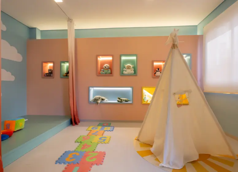 Brinquedoteca Churrasqueira Coworking Mini Mercado Pet Care Piscina Adulto Piscina Infantil Playground Sala de Ginástica Salão de Festas