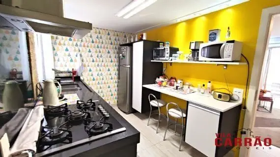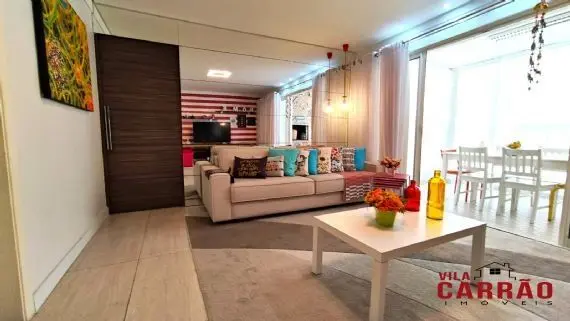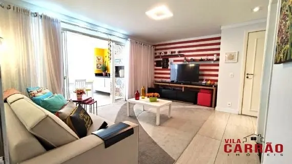 Lindo apartamento com ótimo acabamento interno, todo planejado, com 3 dormitórios, sendo 1 suíte, banheiro social, lavabo, sala 2 ambientes, varanda gourmet lindíssima, ampla cozinha planejada repleta de armários e área de serviço.