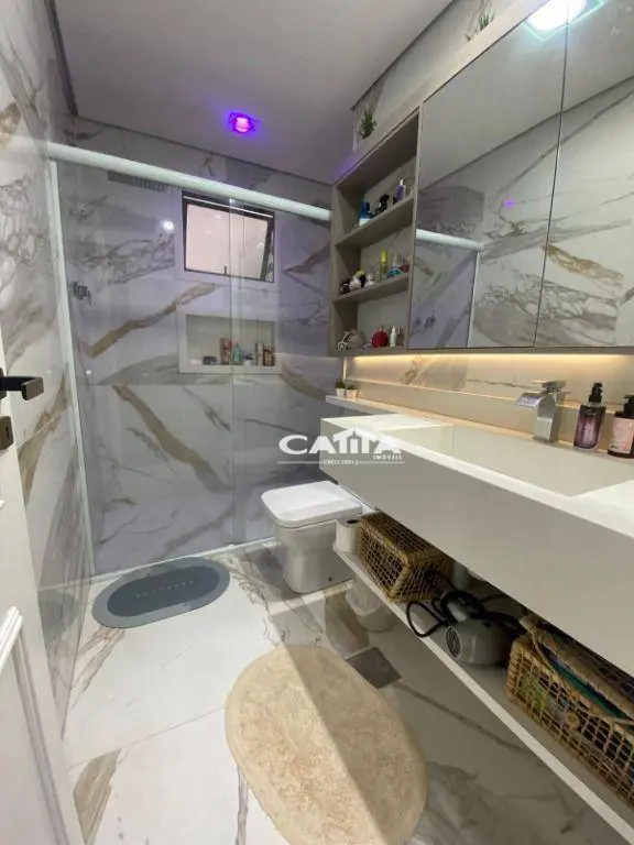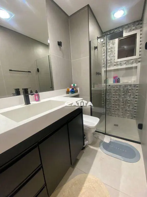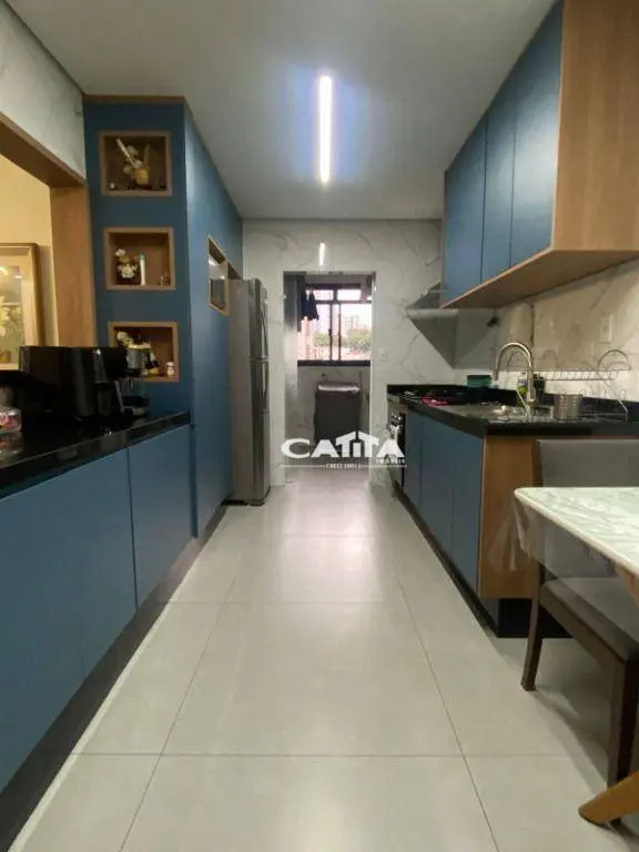 A cozinha é funcional e charmosa, repleta de armários planejados, além de contar com lavabo, área de serviço e 2 vagas de garagem.