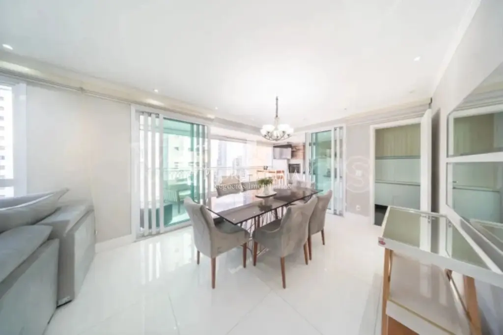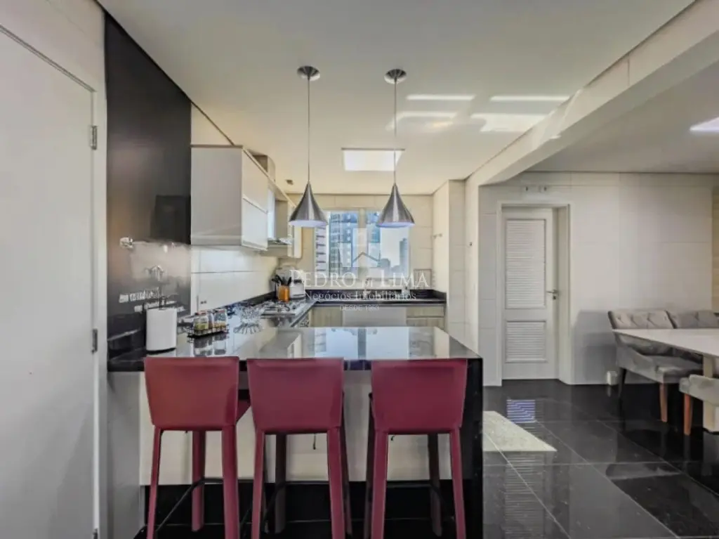 O apartamento no Condominio Conquest possui 3 dormitórios, todos suítes, sendo a suíte máster um diferencial com espaço amplo e acabamentos refinados. A sala de estar é espaçosa, projetada para múltiplos ambientes, e integra-se a uma varanda gourmet equipada com churrasqueira, perfeita para momentos de lazer e confraternizações. A cozinha é planejada, funcional e acompanha uma área de serviço bem dimensionada, além de dependência de empregada com banheiro. O imóvel dispõe de 4 vagas de garagem fixas e um depósito privativo, garantindo praticidade e espaço extra.