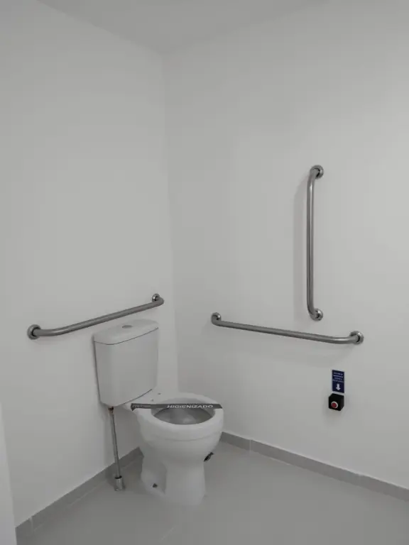 Adaptado para Pessoa com Deficie^ncia (PcD), os itens essenciais incluem barras de apoio para seguranc¸a e transfere^ncia, vasos sanita´rios e lavato´rios adaptados (com altura e espac¸o adequados), acionamento automa´tico das torneiras para fa´cil uso, e pisos antiderrapantes. Tambe´m sa~o importantes espac¸o de manobra para cadeiras de rodas e bota~o para emerge^ncias.