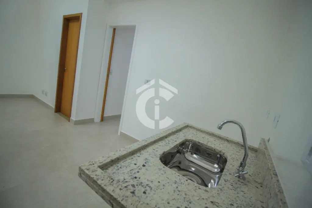 Unidade com 1 quarto com sacada, sala e cozinha intregrados e banheiro. Imóvel com excelente acabamento, pintado, pia de granito, loucas deca, porta de correr no dormitório.