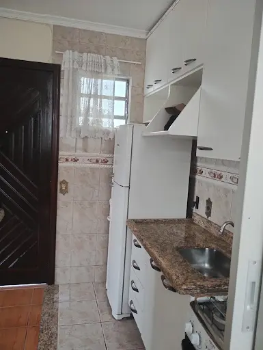 Apartamento mobiliado, organizado e pronto para morar, com armários planejados na cozinha.