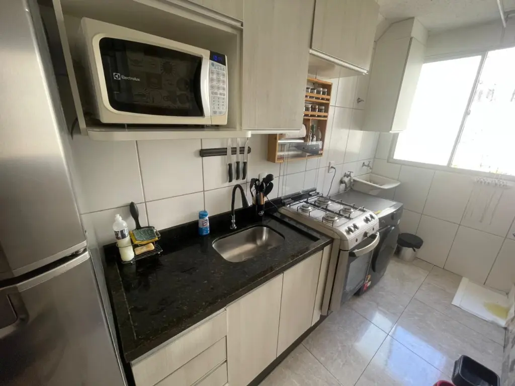 Condomínio oferece: playground, salão de festas, academia, piscina adulto e infantil, mini mercado e portaria 24h