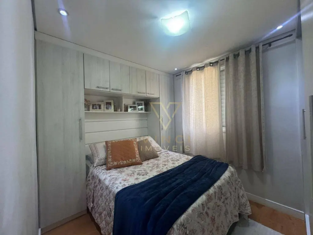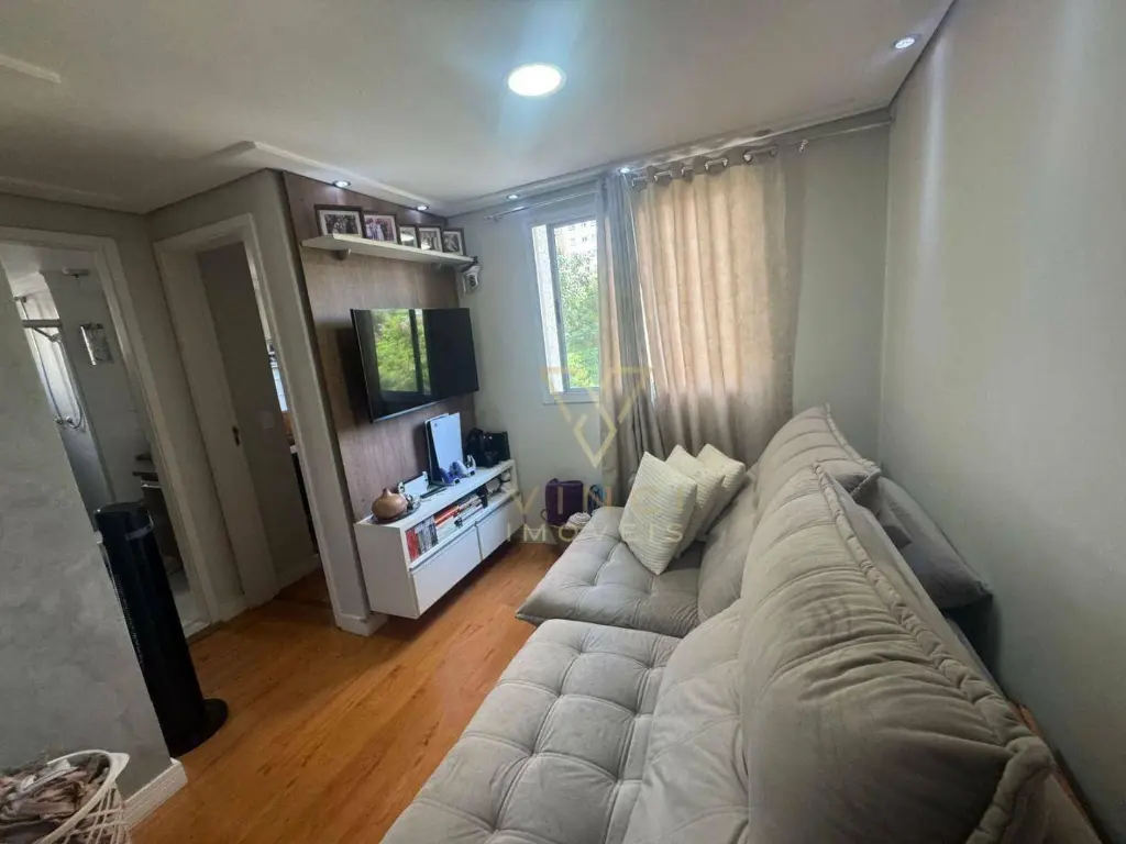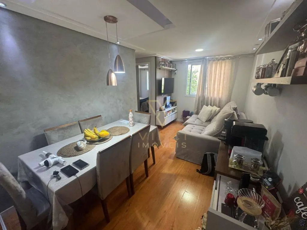 Apartamento aconchegante com 46m², distribuídos em sala, cozinha, 2 dormitório, 1 banheiro, área de serviço e 1 vaga de garagem descoberta.