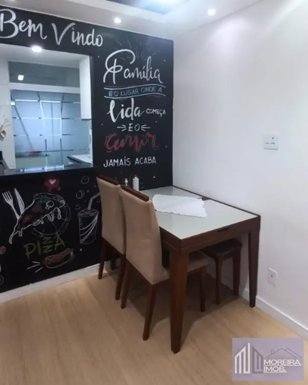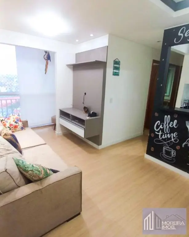 2 dormitórios, sala dois ambientes, sacada, cozinha, área de serviço e 1 banheiro social.