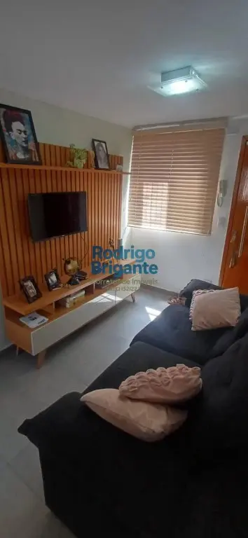 Com 57 m, 2 quartos, sala, cozinha, banheiro e vaga de garagem demarcada.
