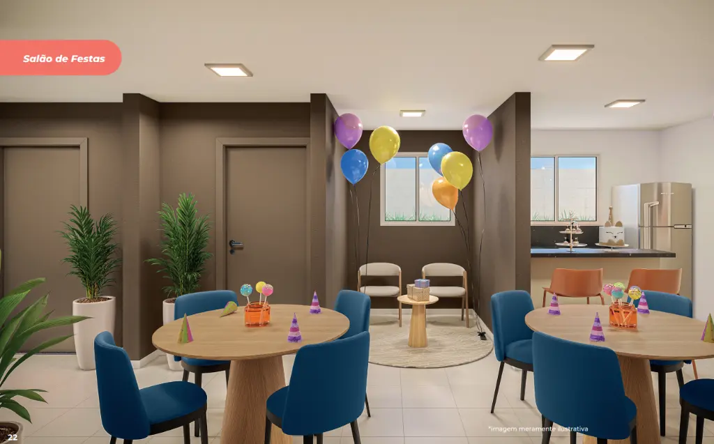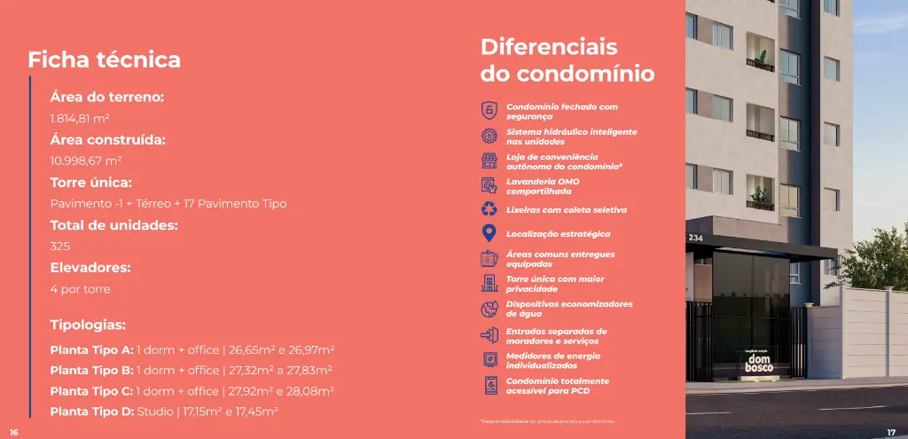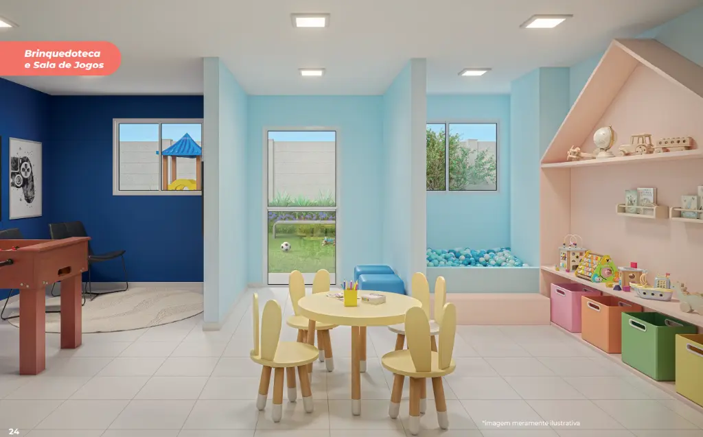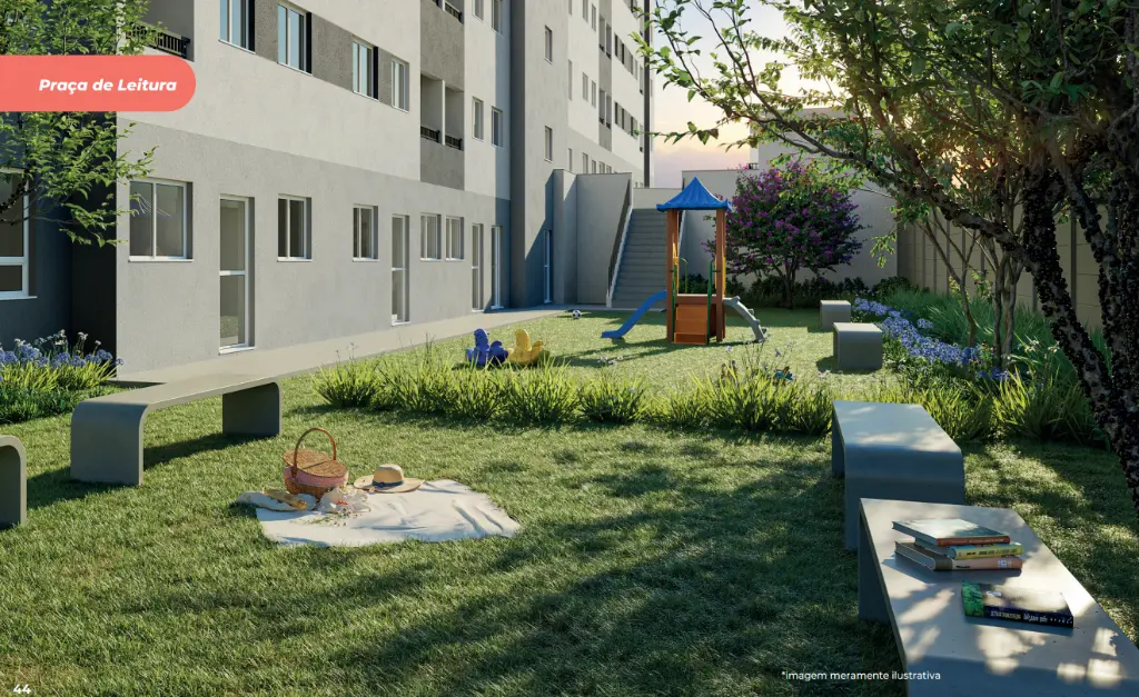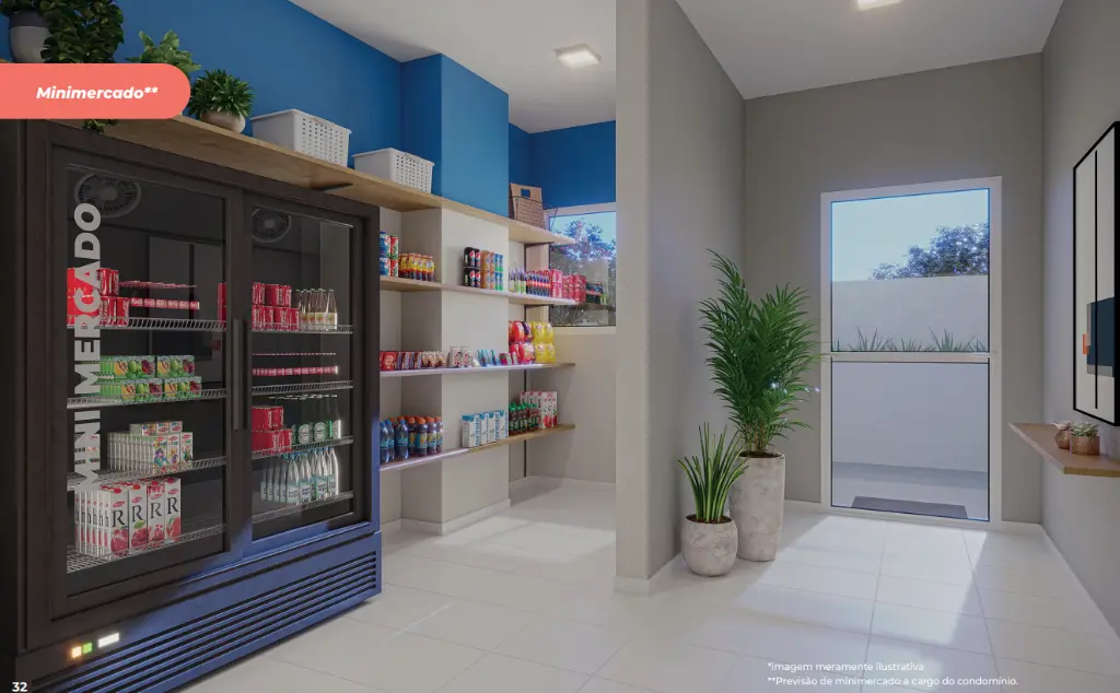 Condomínio completo e bem planejado Portaria com controle de acesso Salão de festas Academia e sala de ginástica Coworking e sala de reunião Brinquedoteca e playground Lavanderia OMO compartilhada Mini mercado no condomínio Espaço pet, bicicletário e horta Praça de leitura Condomínio fechado e acessível